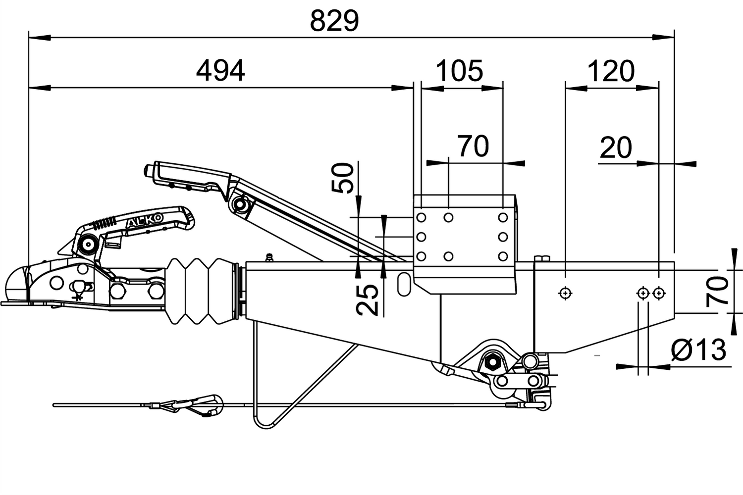 Dispositivo de inercia AL-KO 161S con enganche AK161 para remolque de 1600 kg con lanza cuadrada