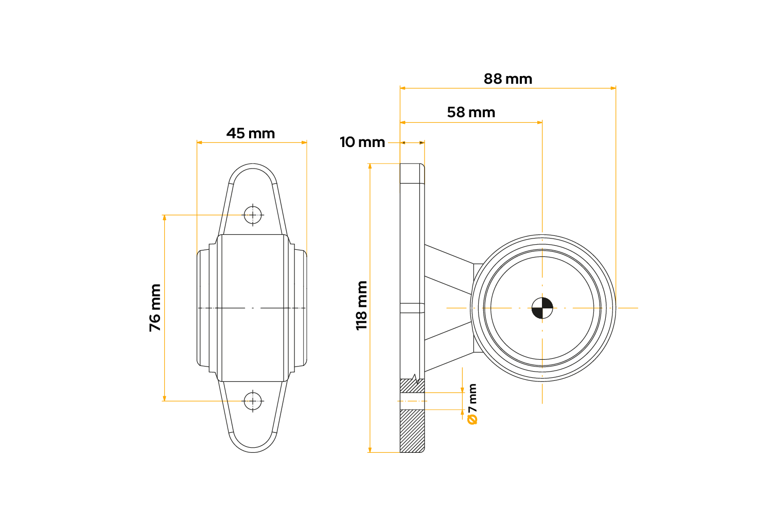 La luz de posición LED FT-009 A de FRISTOM está diseñada para su montaje tanto en el lado izquierdo como en el derecho del vehículo y se caracteriza por las siguientes dimensiones: ancho 118 mm, alto 88 mm, profundidad 45 mm . Diseñado para operar dentro de un rango de voltaje de 12-24 V , puede ser utilizado en remolques, maquinaria agrícola, camiones y remolques, lo que resalta su universalidad. Equipado con un brazo de goma corto y recto. para montaje y un cable plano de 0,5 m de longitud permite una instalación fácil y rápida. Gracias al uso de la tecnología LED La lámpara proporciona alto rendimiento, durabilidad y eficiencia energética, garantizando la seguridad en diversas condiciones de la carretera.
