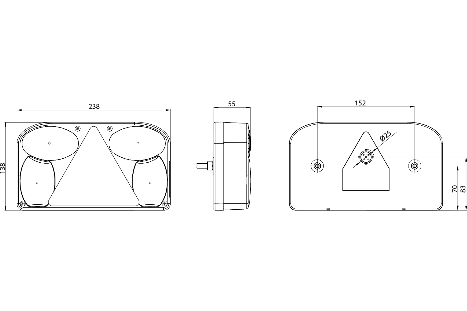 La luz trasera FT-088 de FRISTOM está diseñada para su montaje en el lado izquierdo del vehículo y tiene las siguientes dimensiones: ancho 238 mm, alto 138 mm, profundidad 55 mm . Equipado con un conector de bayoneta de 5 pines , permite una instalación fácil y rápida. en remolques, autobuses o trailers .