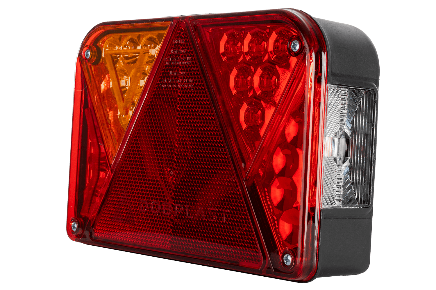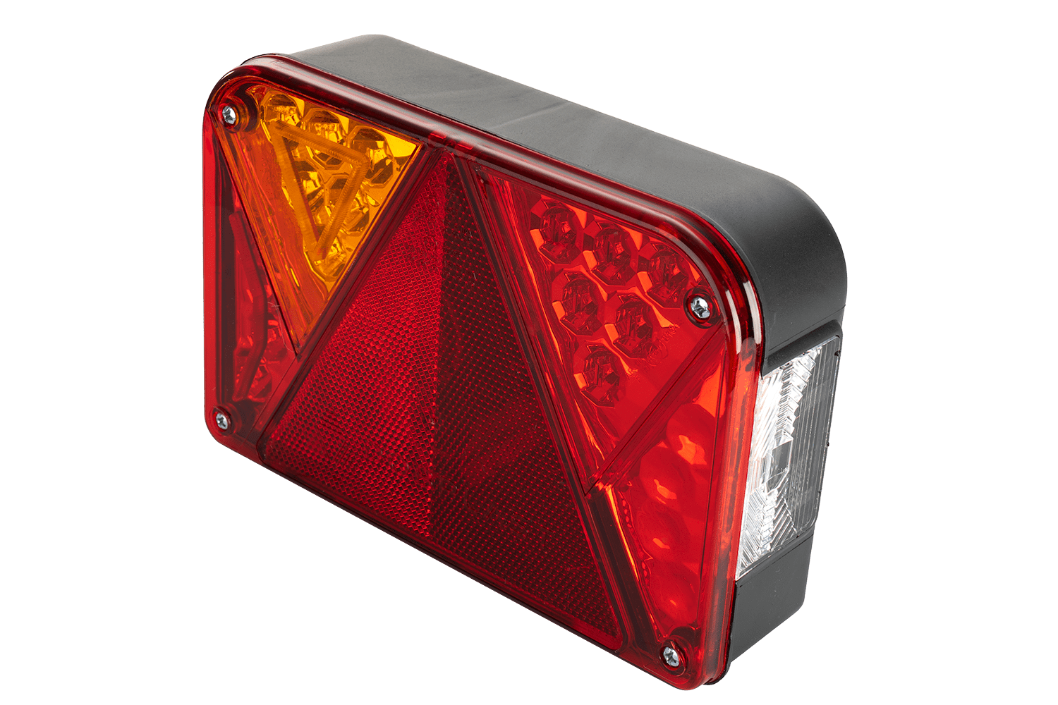 luz de matrículaLa lámpara tiene seis funciones: una luz de posición que asegura la visibilidad del vehículo cuando se conduce de noche; una luz direccional que permite indicar la intención de girar ; una luz de freno que señala el frenado; una luz antiniebla que aumenta la seguridad en condiciones climáticas difíciles, como niebla o fuertes lluvias; un triángulo reflectante que aumenta la visibilidad del vehículo y una luz de matrícula que asegura la legibilidad del número de matrícula durante la noche.