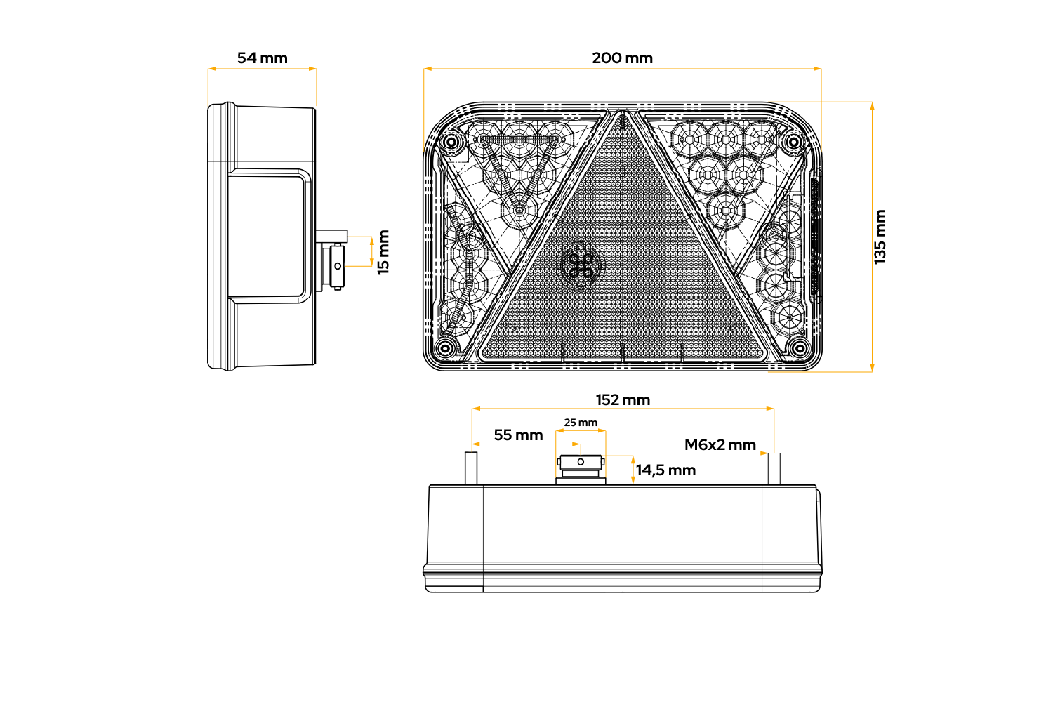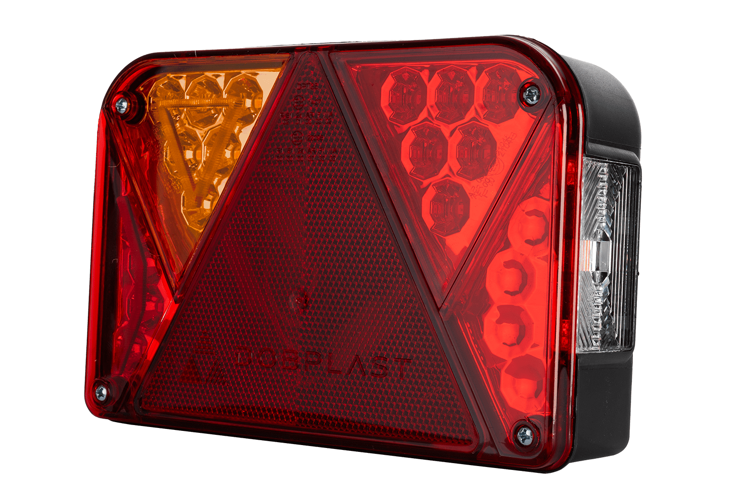 La luz trasera LED DPT35 de DOBPLAST , diseñada para su instalación en el lado izquierdo del vehículo , mide 200 mm de ancho , 135 mm de alto y 54 mm de profundidad . Diseñada para funcionar a 12 V , es apta para remolques ligeros, furgonetas y remolques, lo que aumenta su versatilidad . Equipada con un conector de bayoneta de 5 pines , permite una instalación rápida y sencilla. Gracias a la tecnología LED, esta luz ofrece un alto rendimiento, durabilidad y eficiencia energética, garantizando la seguridad en diversas condiciones de la carretera. La luz cuenta con módulos LED reemplazables e impermeables.