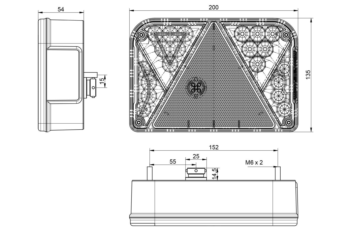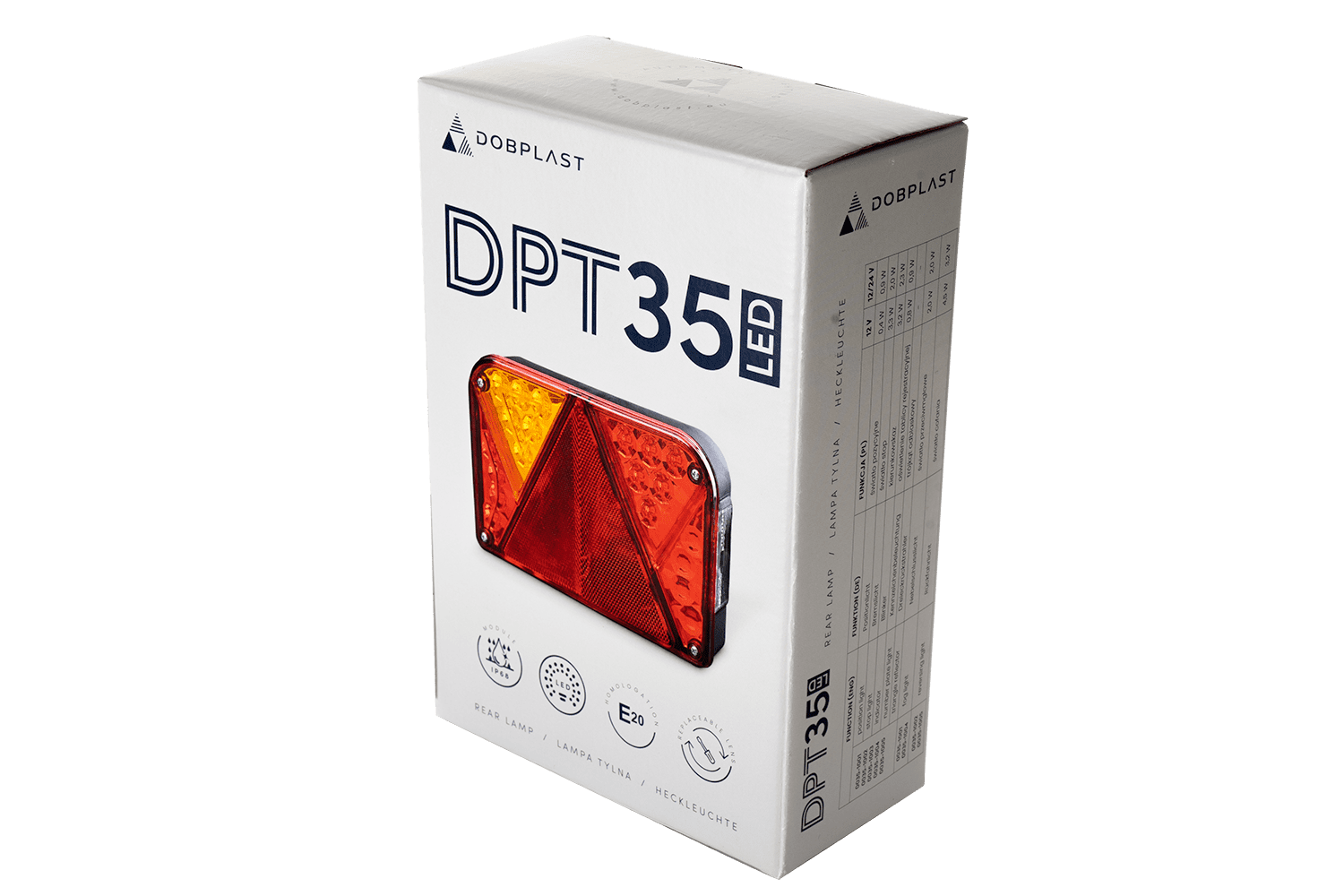 La luz trasera LED DPT35 de DOBPLAST , diseñada para su montaje en el lado derecho del vehículo , mide 200 mm de ancho , 135 mm de alto y 54 mm de profundidad . Diseñada para funcionar a 12 V , es apta para remolques ligeros, furgonetas y remolques, lo que aumenta su versatilidad . Equipada con un conector de bayoneta de 5 pines , permite una instalación rápida y sencilla. Gracias a la tecnología LED, esta luz ofrece un alto rendimiento, durabilidad y eficiencia energética, garantizando la seguridad en diversas condiciones de la carretera. La luz cuenta con módulos LED reemplazables e impermeables.