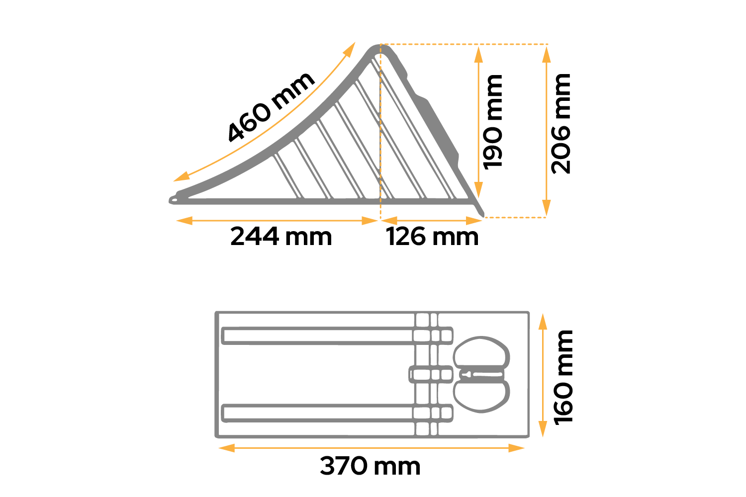 La cuña está diseñada para su uso con neumáticos con un radio estático máximo de hasta 460 mm y su capacidad de carga máxima es de 5.000 kg. Gracias a estas propiedades, la cuña UK 46 St proporciona una protección eficaz para una amplia gama de vehículos, desde turismos hasta caravanas y remolques de camiones.