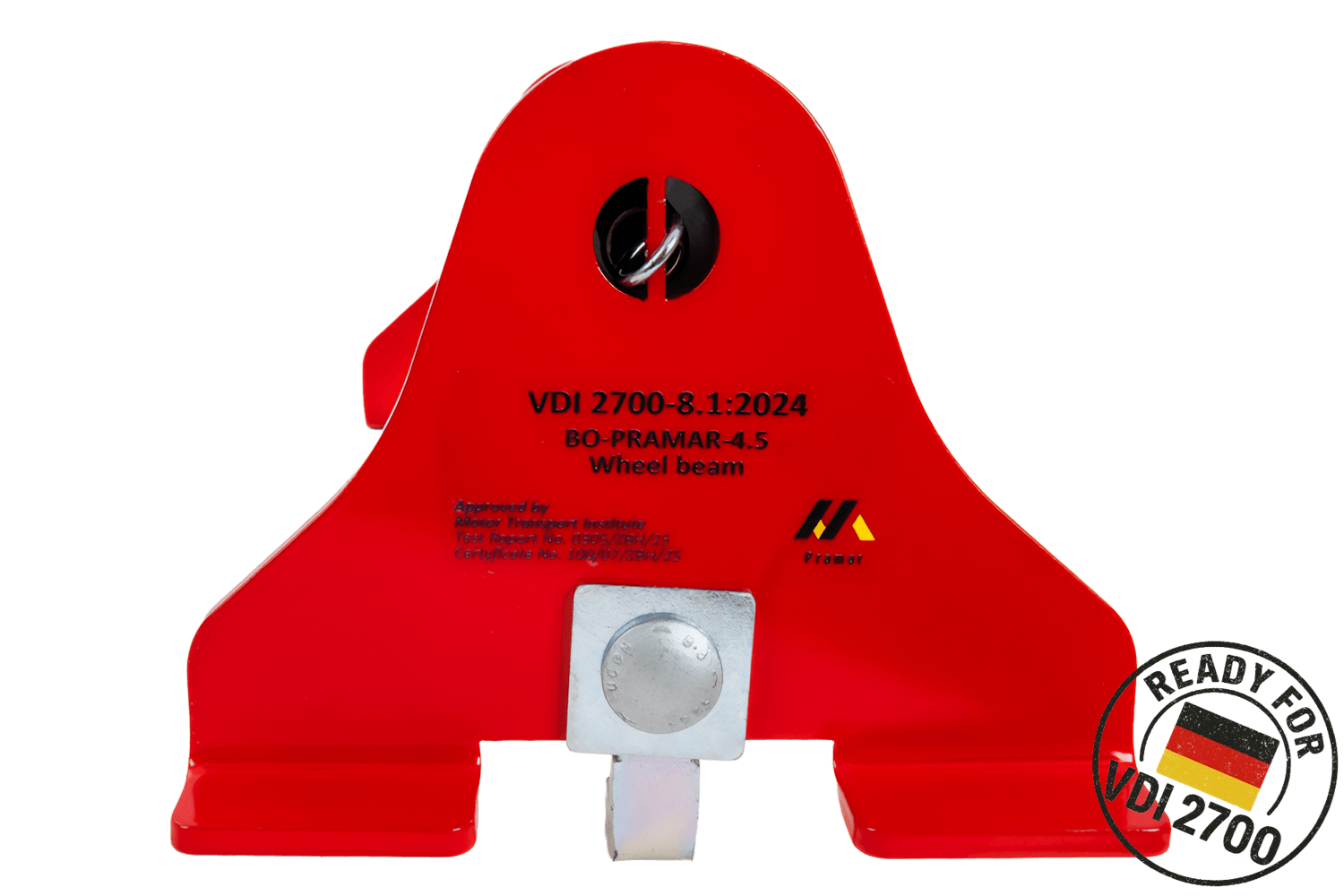 El bloqueador Radstopper PRAMAR está certificado según la norma VDI 2700 para la sujeción de vehículos de hasta 4,5 T , lo que confirma su seguridad y calidad de fabricación de acuerdo con las normas europeas de sujeción de cargas. La norma VDI 2700 proporciona directrices para la correcta sujeción de vehículos en plataformas de transporte, y el cumplimiento de sus requisitos significa que el producto ha sido probado en cuanto a resistencia, estabilidad y funcionalidad en condiciones de uso en carretera. Esto le da al usuario la seguridad de que el armario cumple con los estrictos requisitos de protección de los vehículos transportados, tanto en aplicaciones comerciales como individuales.
