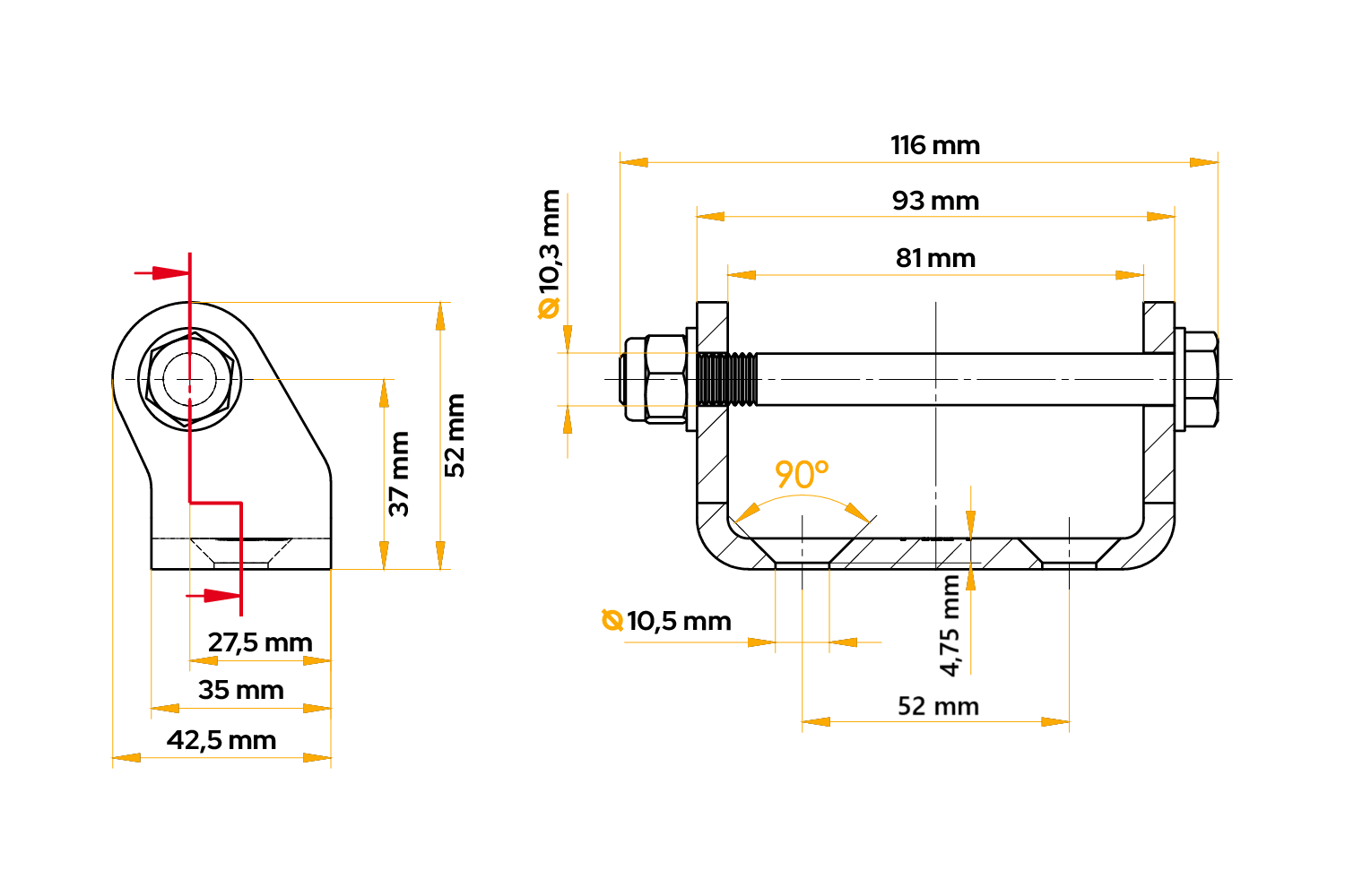 Soporte de bisagra incorporado STEELPRESS UH-01 para montaje lateral de remolque