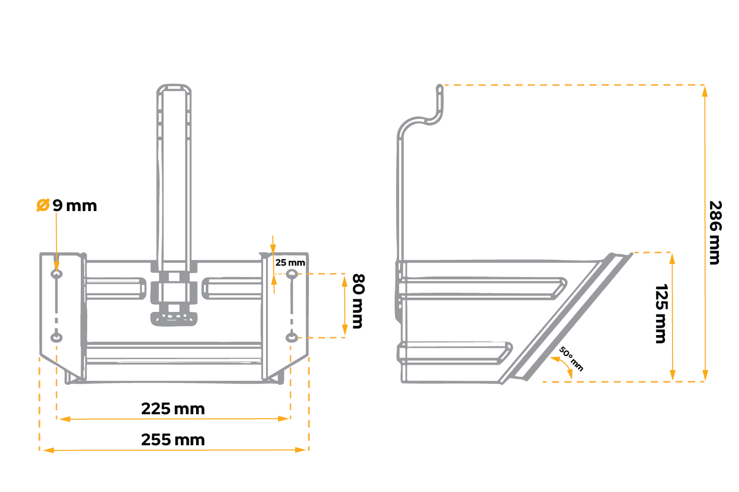 • HA 53 Soporte para calzo UK 53, fabricado en metal galvanizado. El asa elimina el riesgo de que la cuña se deslice o se caiga del vehículo y garantiza que la cuña quede perfectamente sujeta en el asa durante el transporte.