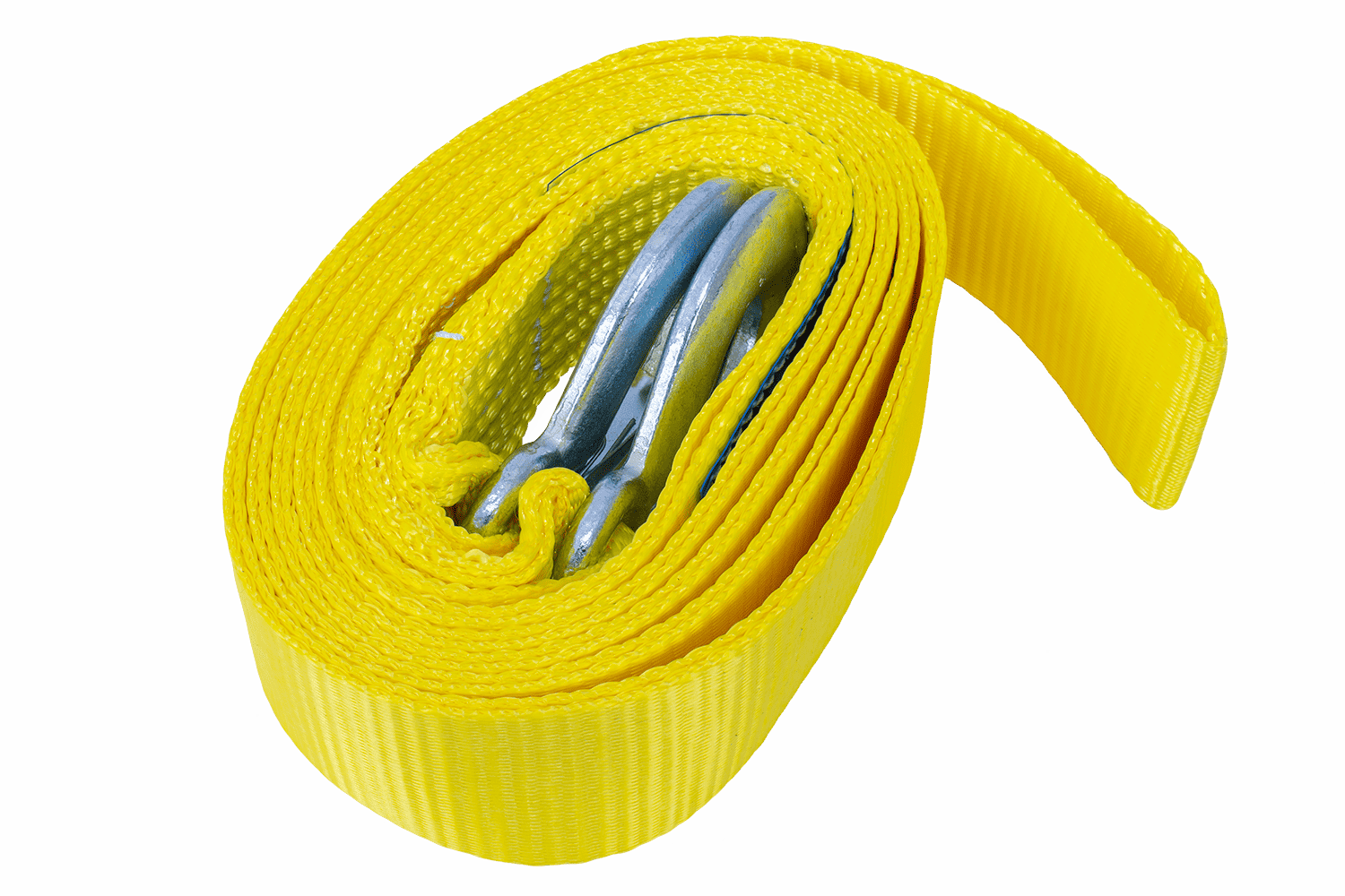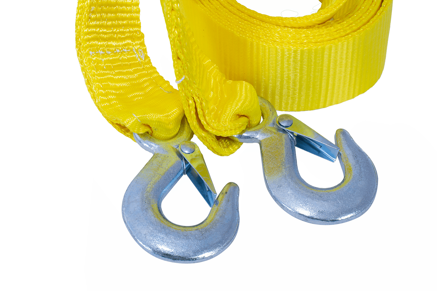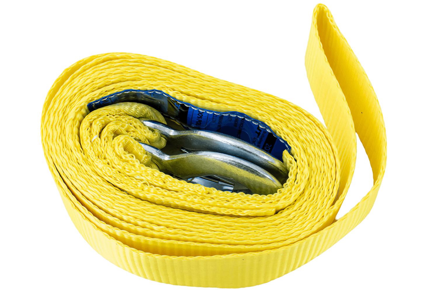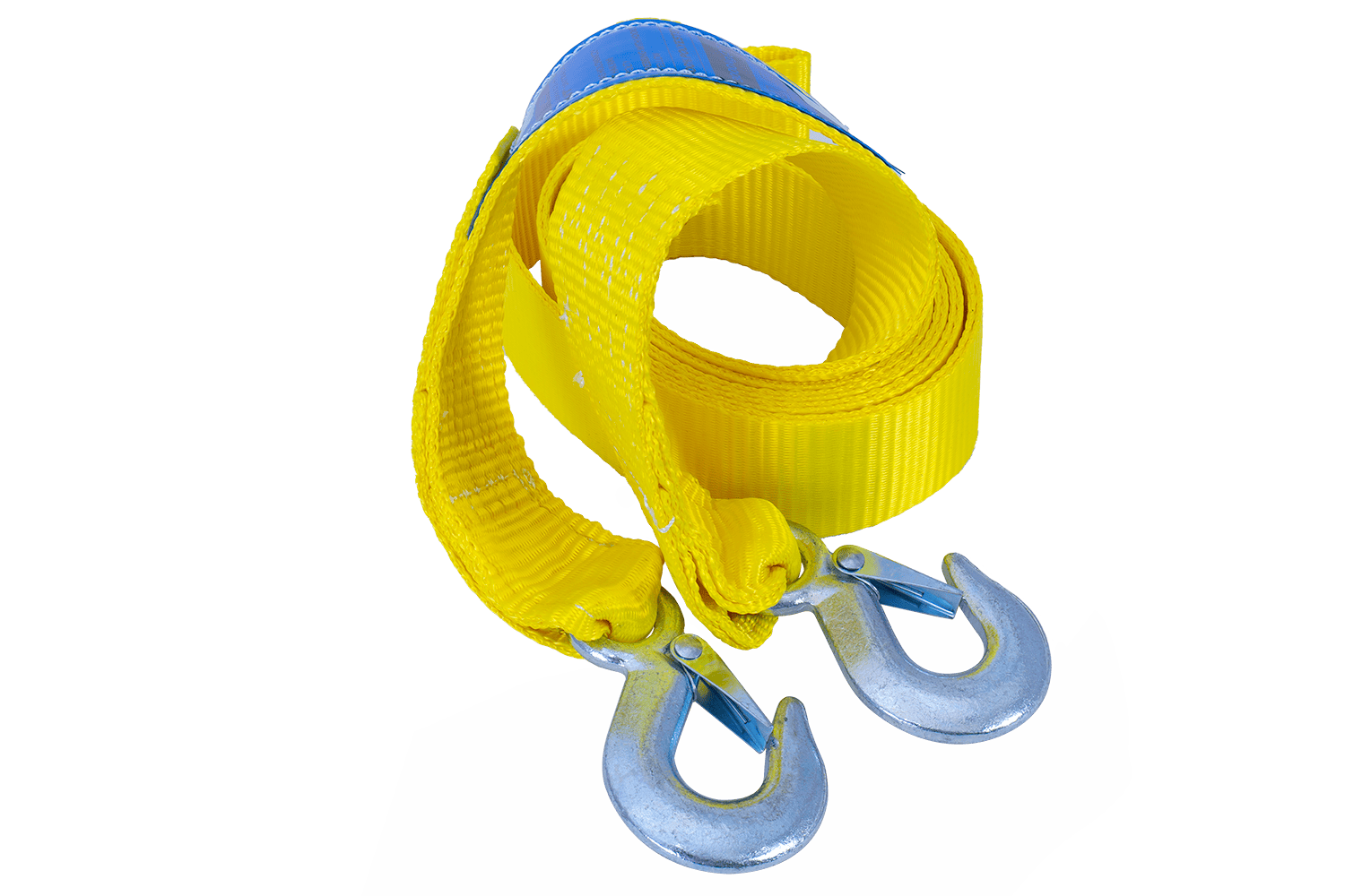 Correa de remolque con ganchos El UNITRAILER amarillo es un accesorio fiable para remolque de emergencia de vehículos Turismos, furgonetas de reparto y maquinaria ligera. Fabricada en cinta sintética duradera , de 4,5 metros de largo y 50 mm de ancho, lo que garantiza una resistencia adecuada, la correa está equipada con un sólido ganchos de metal asegurando en ambos lados. La fuerza máxima de tracción es 3 toneladas (3000 kg) , lo que le permite remolcar de forma segura y eficaz la mayoría de los vehículos estándar .