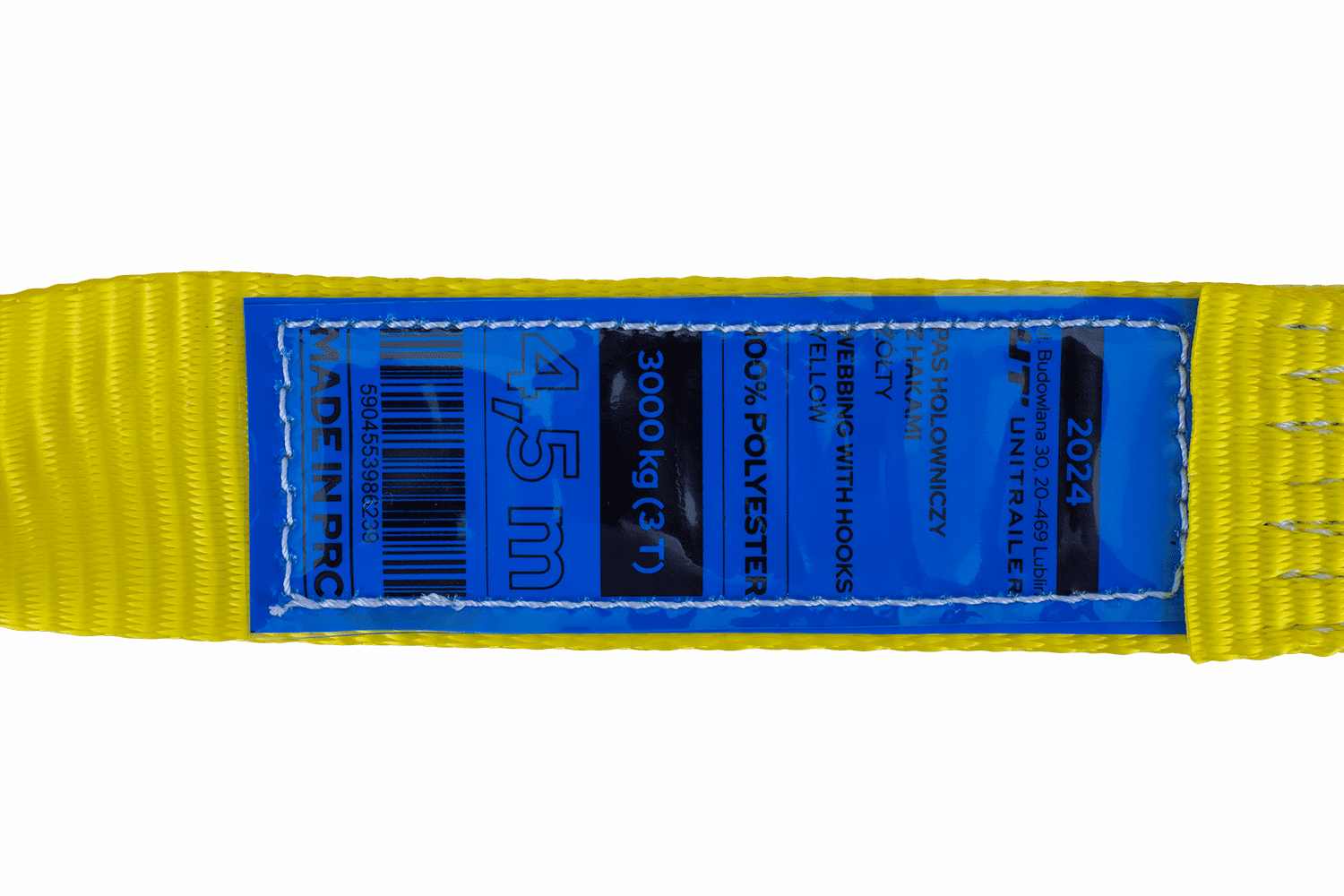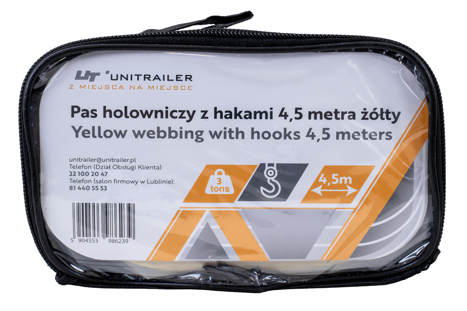 UNITRAILER se preocupa por la calidad y seguridad de sus productos, por eso la correa de remolque está equipada con ganchos de acero duraderos protegidos contra la corrosión. Las marcas claras en la cinta y una etiqueta de información en polaco e inglés facilitan la identificación de los parámetros técnicos. Este modelo es un equipamiento práctico e imprescindible para cada conductor, aumentando la seguridad y la preparación ante situaciones inesperadas en la carretera.
