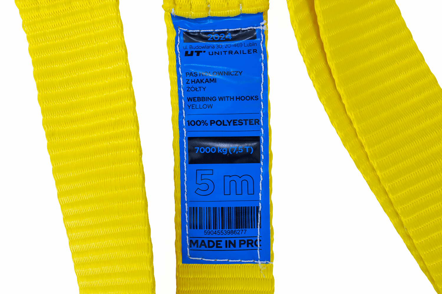 UNITRAILER se preocupa por la calidad y seguridad de sus productos, por eso la correa de remolque está equipada con ganchos de acero duraderos protegidos contra la corrosión. Las marcas claras en la cinta y una etiqueta de información en polaco e inglés facilitan la identificación de los parámetros técnicos. Este modelo es un equipamiento práctico e imprescindible para cada conductor, aumentando la seguridad y la preparación ante situaciones inesperadas en la carretera.