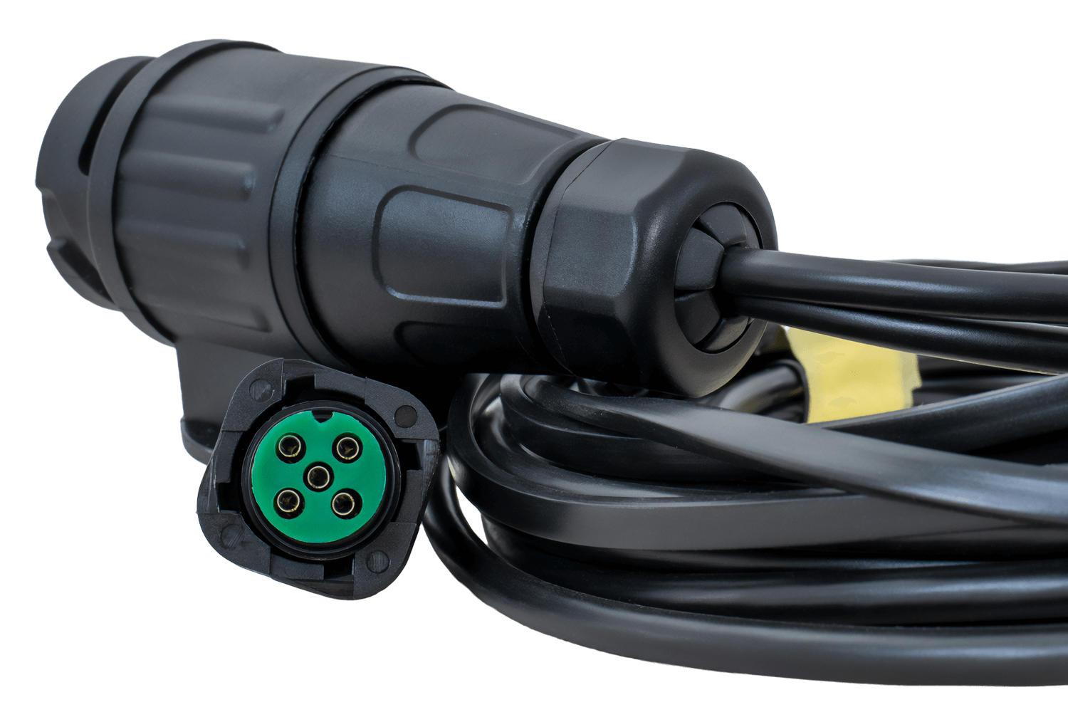 El arnés está equipado con dos conectores de bayoneta de 5 pines para conectar las luces traseras. El sistema de bayoneta garantiza una instalación rápida y segura, eliminando el riesgo de desconexiones accidentales durante la conducción. El diseño del conector garantiza una conexión impermeable y protege los contactos de la corrosión, asegurando así un funcionamiento a largo plazo y sin problemas de todo el sistema de iluminación del remolque.