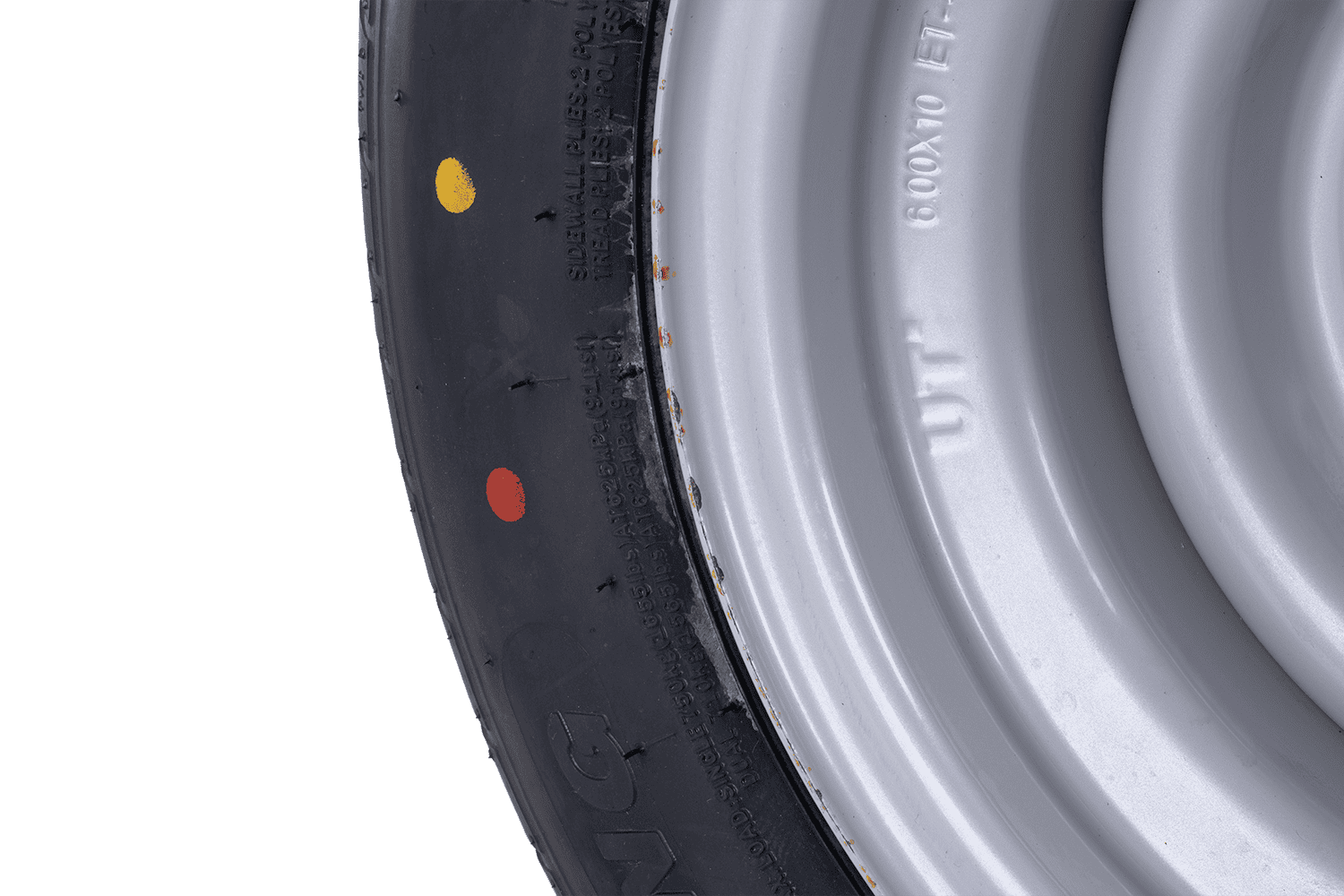 Producto outlet - neumático fabricado en 2024. La llanta presenta daños de distintos grados y ubicaciones, como daños en la pintura, decoloración, rayones, pequeñas manchas de óxido o abolladuras.