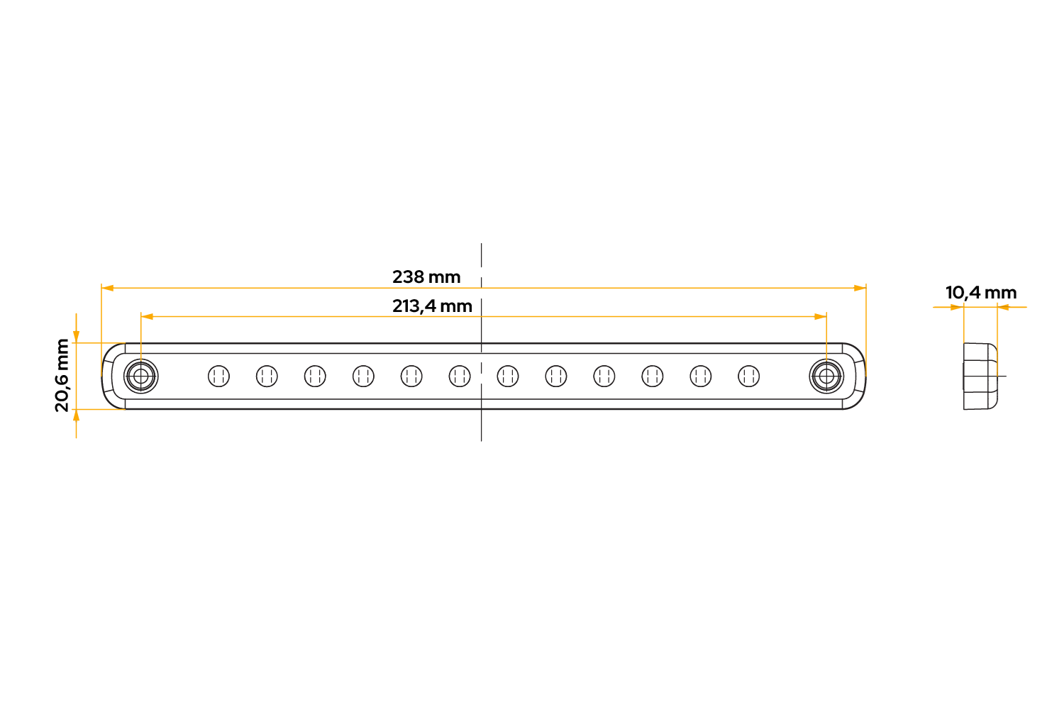 La luz de freno trasera LED W207 1395 KR de WAŚ está diseñada para su montaje tanto en el lado izquierdo como en el derecho del vehículo y tiene las siguientes dimensiones: ancho 238 mm, alto 20,6 mm y profundidad 10,4 mm . Diseñado para operar dentro de un rango de voltaje de 12-24 V , puede ser utilizado en remolques, camiones y grúas, lo que resalta su universalidad . Equipado con un cable de 0,39 m de longitud , permite una instalación fácil y rápida. Gracias al uso de tecnología LED, la lámpara proporciona un alto rendimiento, durabilidad y eficiencia energética, garantizando la seguridad en diversas condiciones de la carretera.