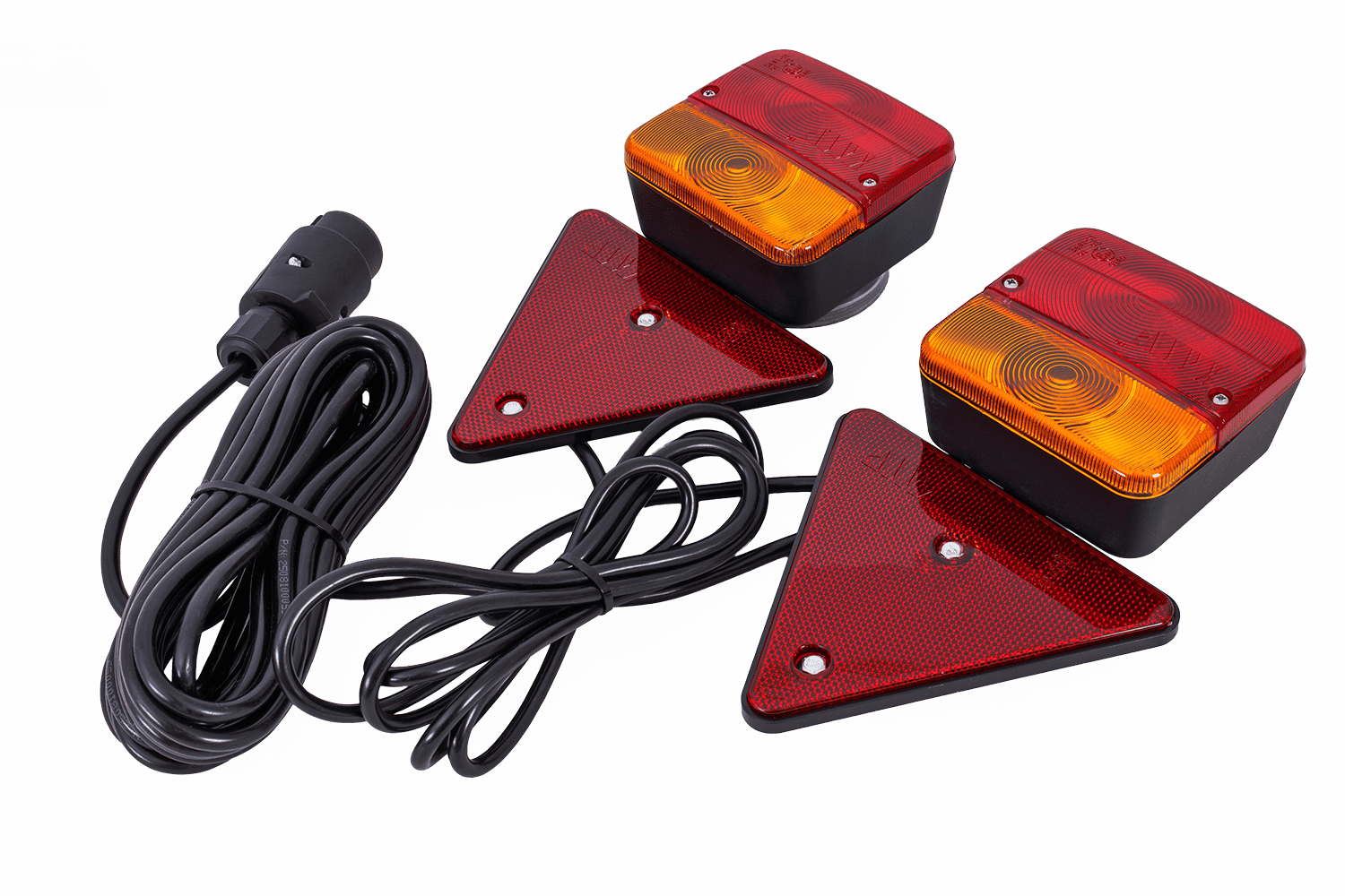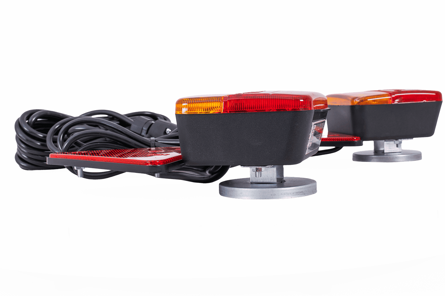 Juego de dos luces traseras L1070-Z Marca KAMAR, destinada para montaje en el lado izquierdo y derecho del vehículo , caracterizado por las dimensiones: ancho 106 mm, alto 100 mm . Equipado con un cable de 7,5 m con conector de bayoneta de 7 PIN y un cable de conexión de lámpara de 2,5 m, que permite una fácil y rápida instalación en remolques, autobuses o tráileres . Gracias al montaje magnético, la instalación es extremadamente sencilla y no requiere perforaciones ni soportes adicionales.