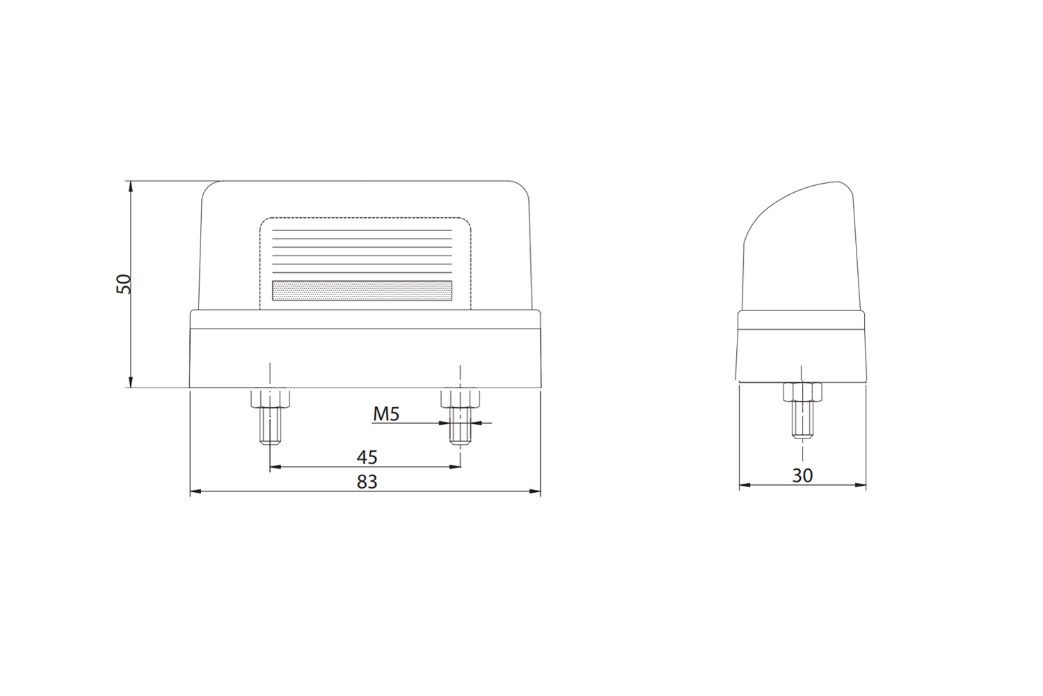 La lámpara FT-022 de FRISTOM es una lámpara Para iluminar matrículas , apto para diversos tipos de vehículos, desde remolques y camiones de plataforma hasta vehículos de reparto y camiones. La lámpara tiene las siguientes dimensiones: Ancho: 83 mm, alto: 50 mm, profundidad: 30 mm . En la parte posterior de la lámpara hay una arandela de goma para conectar el cable.