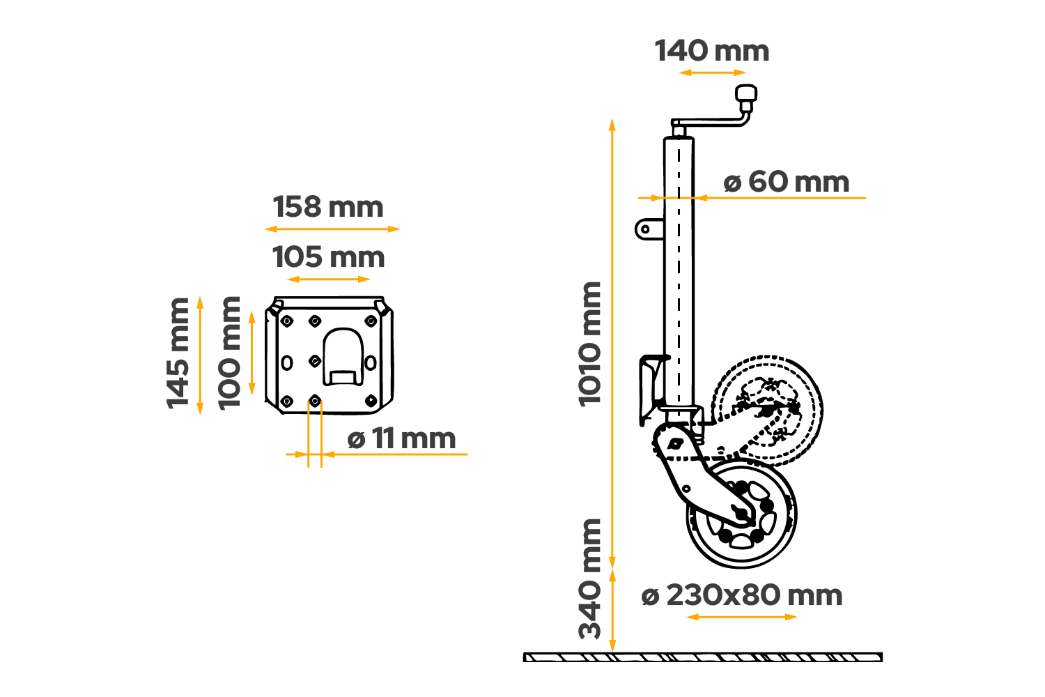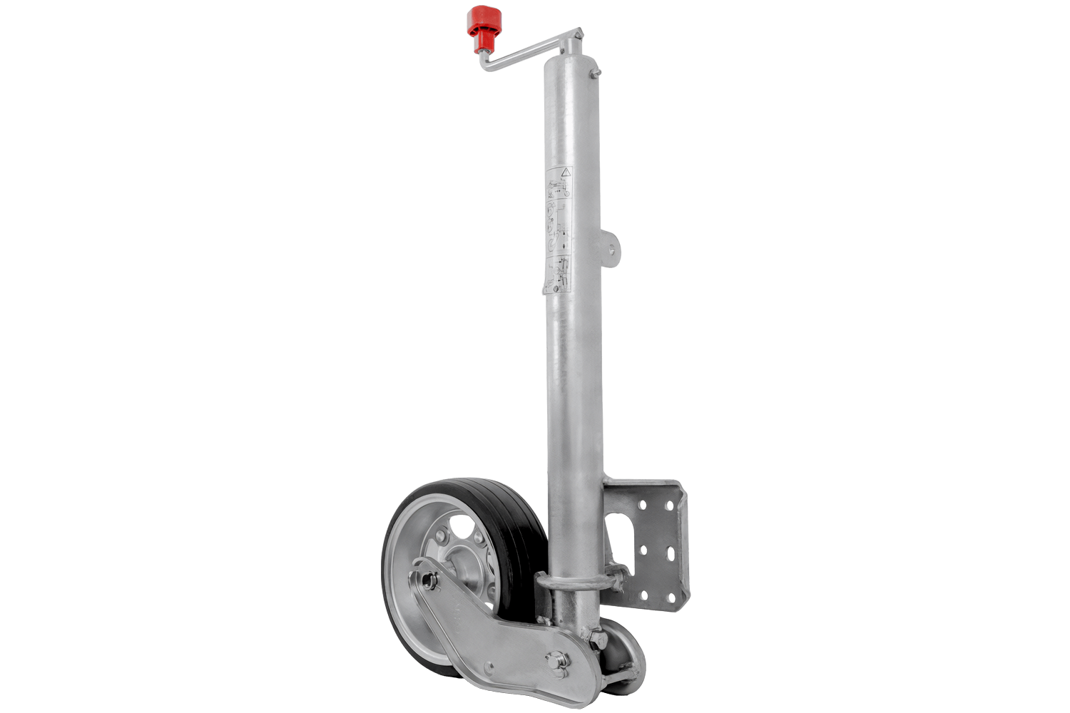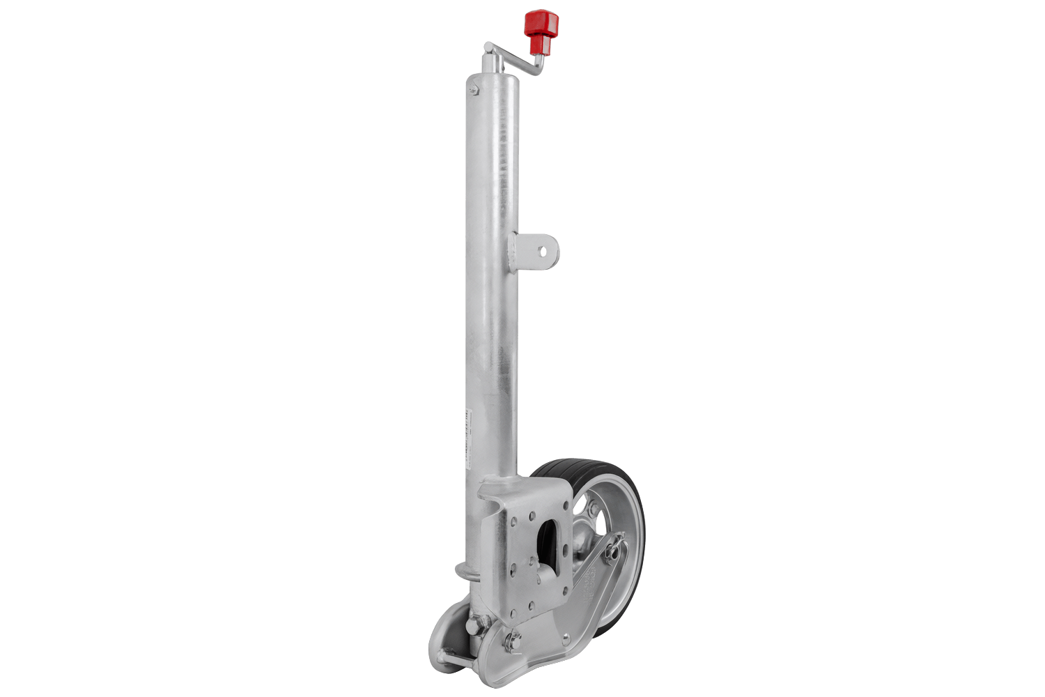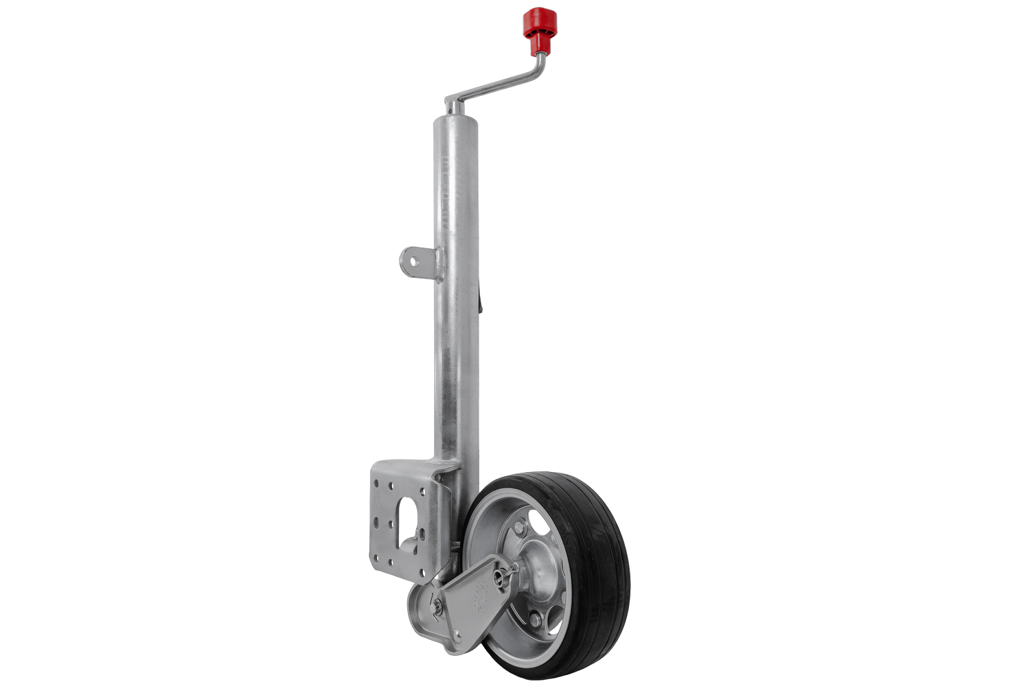 La rueda está galvanizada por inmersión en caliente, lo que la protege eficazmente de la corrosión y las inclemencias del tiempo. Incorpora una manivela con cojinete de empuje , lo que facilita su manejo y reduce la exigencia. El mecanismo de elevación de la rueda es totalmente automático y la boquilla de engrase integrada garantiza libertad de movimiento y una mayor vida útil. Este modelo es una versión larga con un recorrido de ajuste extendido , lo que facilita un ajuste preciso de la altura. Además, la placa de soporte de la rueda está soldada a fondo, lo que aumenta el espacio de pivote del pie de apoyo durante la elevación y garantiza una mayor comodidad de uso.