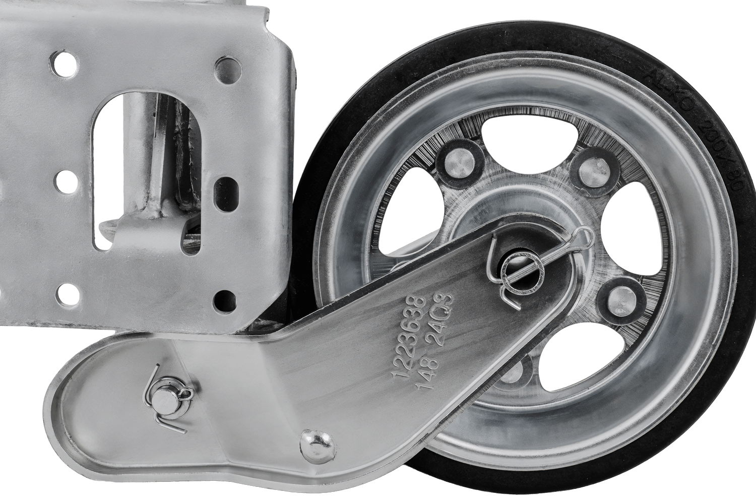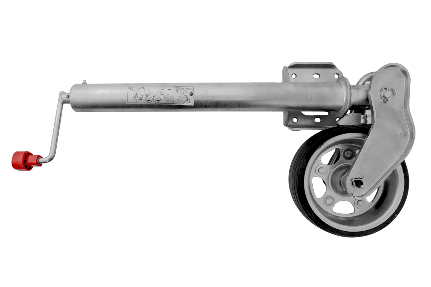 • La rueda jockey AL-KO, con una capacidad de carga de 500 kg, estabiliza la barra de tiro del remolque cuando está estacionado y facilita las maniobras. Su construcción reforzada y su fácil instalación la hacen ideal para remolques que requieren mayor capa