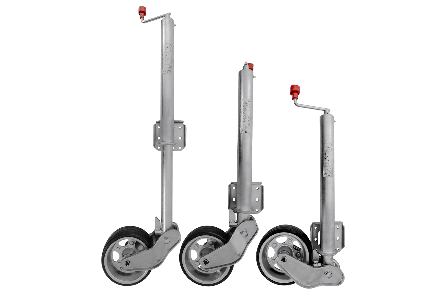 Las ruedas jockey son fundamentales para mantener la estabilidad del remolque al estacionar y facilitan la maniobrabilidad, especialmente en terrenos irregulares. Facilitan el acoplamiento y desacoplamiento del remolque del vehículo, aumentando la seguridad y la comodidad. Además, gracias a su ajuste de altura, permiten un posicionamiento preciso del remolque, especialmente útil durante la carga y descarga.