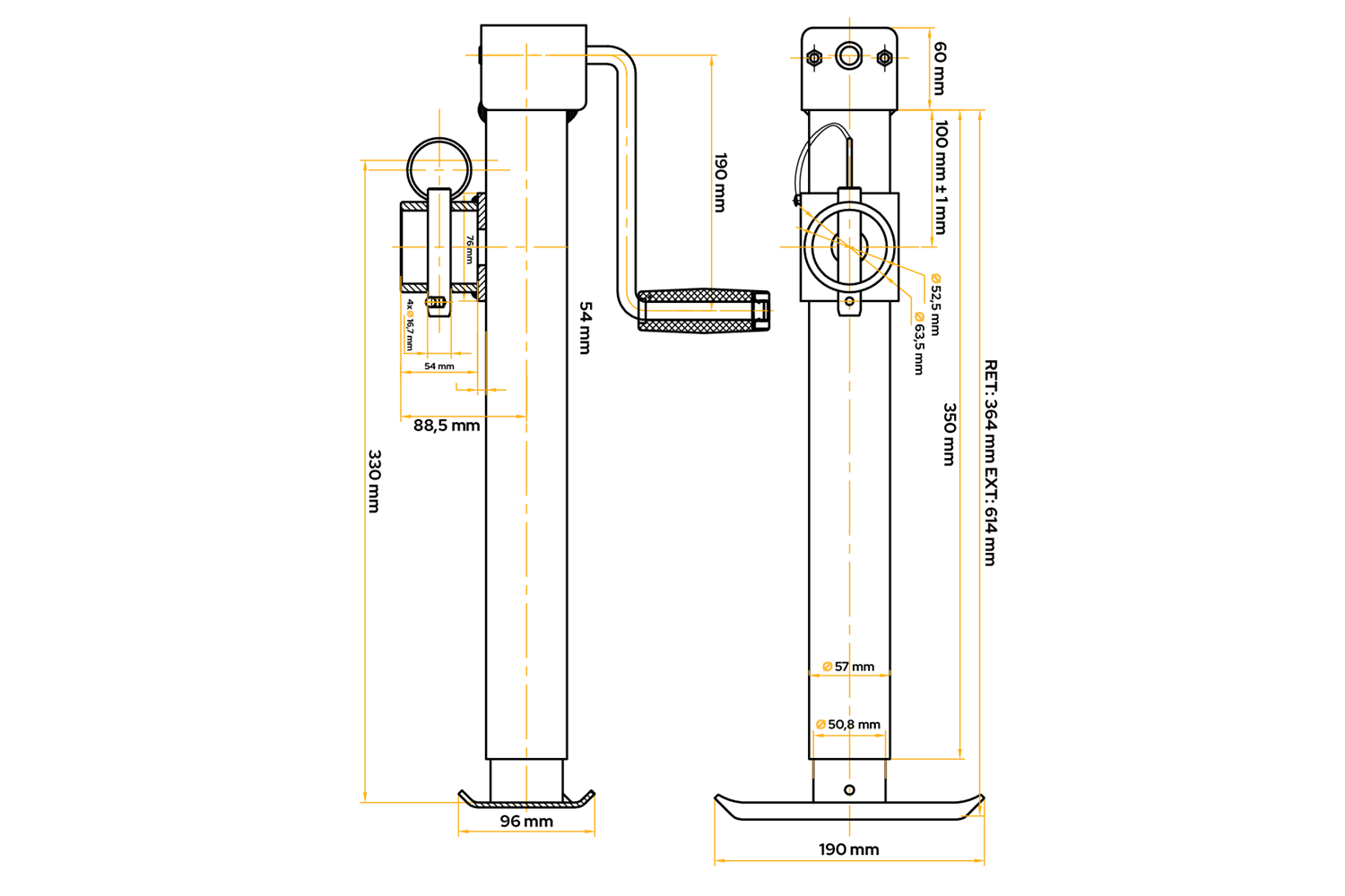 Soporte de manivela UNITRAILER TJ5001 para remolque de 1300 kg
