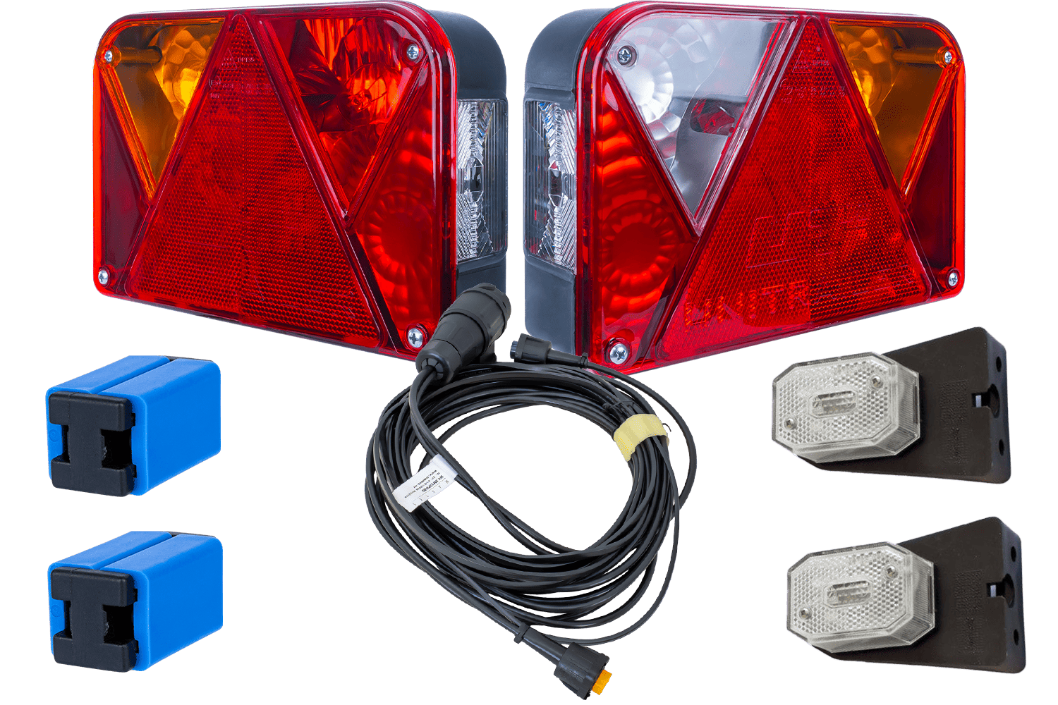 El kit de iluminación es una instalación eléctrica integral que proporciona una iluminación completa y conforme a la normativa para remolques, remolques y otros vehículos de transporte , aumentando así su visibilidad y seguridad vial. Consta de luces traseras, luces de posición, un mazo de cables y conectores rápidos. Estos conectores permiten una instalación rápida y sencilla, garantizando una conexión duradera y segura entre las luces de posición y el cableado. Gracias a sus componentes de alta calidad, el kit garantiza un funcionamiento fiable y una buena visibilidad. Y cumple con las normas de seguridad aplicables. Esta es la solución ideal para quienes buscan un sistema de iluminación vehicular completo y duradero .