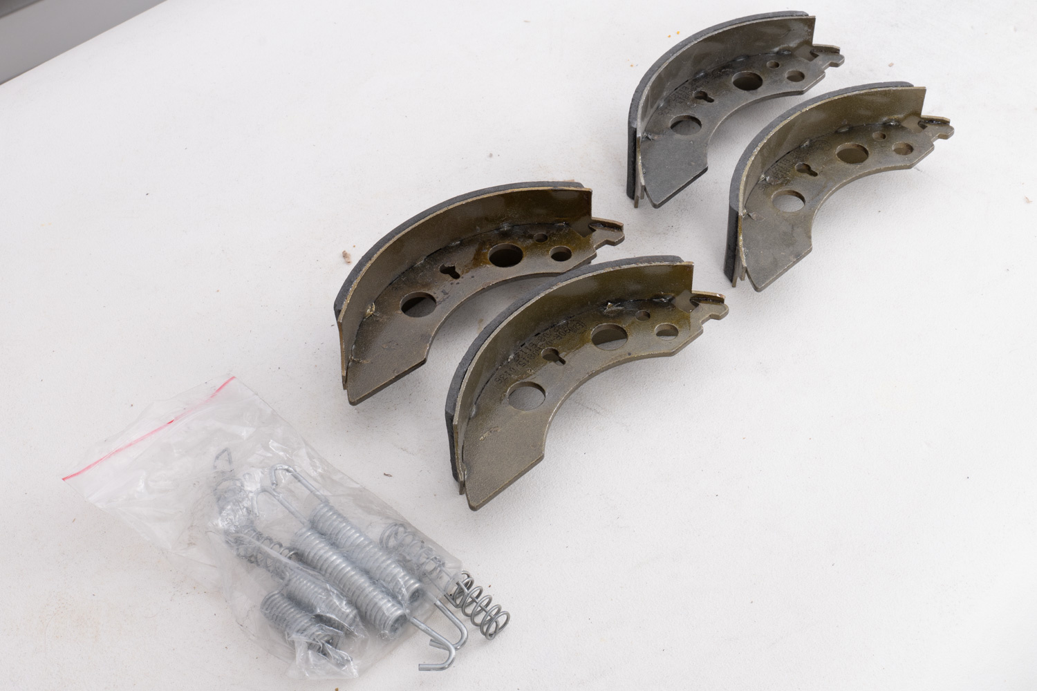 Un juego de zapatas de freno de fabricación polaca que se adapta a los ejes AL-KO . Las mordazas se adaptan a los bidones AL-KO 2050/2051 .