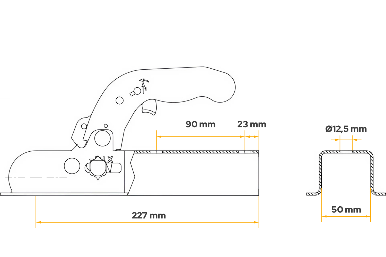 El enganche de bola K7.5-K de KNOTT está diseñado para remolques con un peso total máximo de 750 kg . Diseñado para ser montado en una barra de tiro cuadrada de 50 mm , garantiza una conexión estable y segura al vehículo remolcador. Se caracteriza por una carga vertical admisible de 75 kg , lo que asegura una distribución óptima de la carga entre el remolque y el vehículo, garantizando estabilidad y seguridad durante la conducción. Su diseño permite un fácil montaje y desmontaje, lo que aumenta la comodidad de uso. Gracias a su precisa fabricación y a su compatibilidad con una amplia gama de remolques, este enganche es una solución fiable para los usuarios que valoran la calidad y la seguridad en el transporte de cargas ligeras.