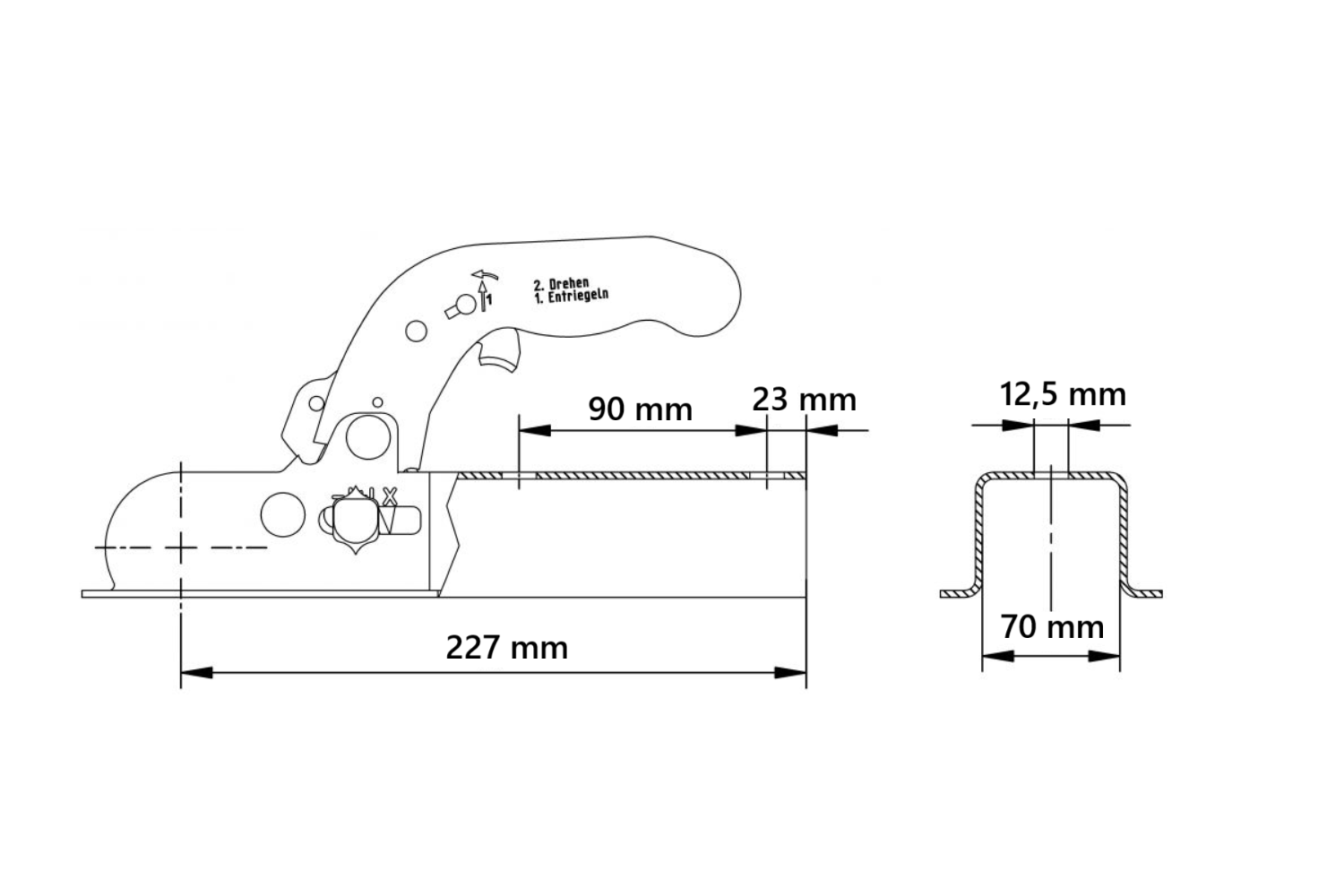 • El enganche de bola K7.5-M de KNOTT está diseñado para remolques que pesan hasta 750 kg. Montado sobre una barra de tiro cuadrada de 70 mm, se utiliza para conectar de forma segura el remolque al vehículo tractor.