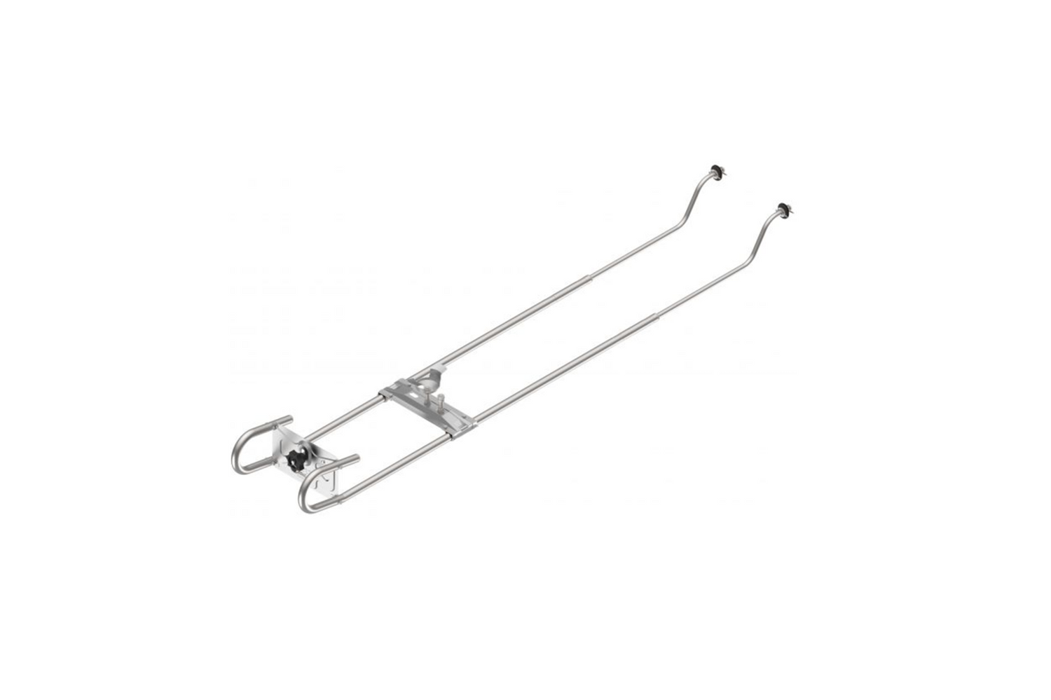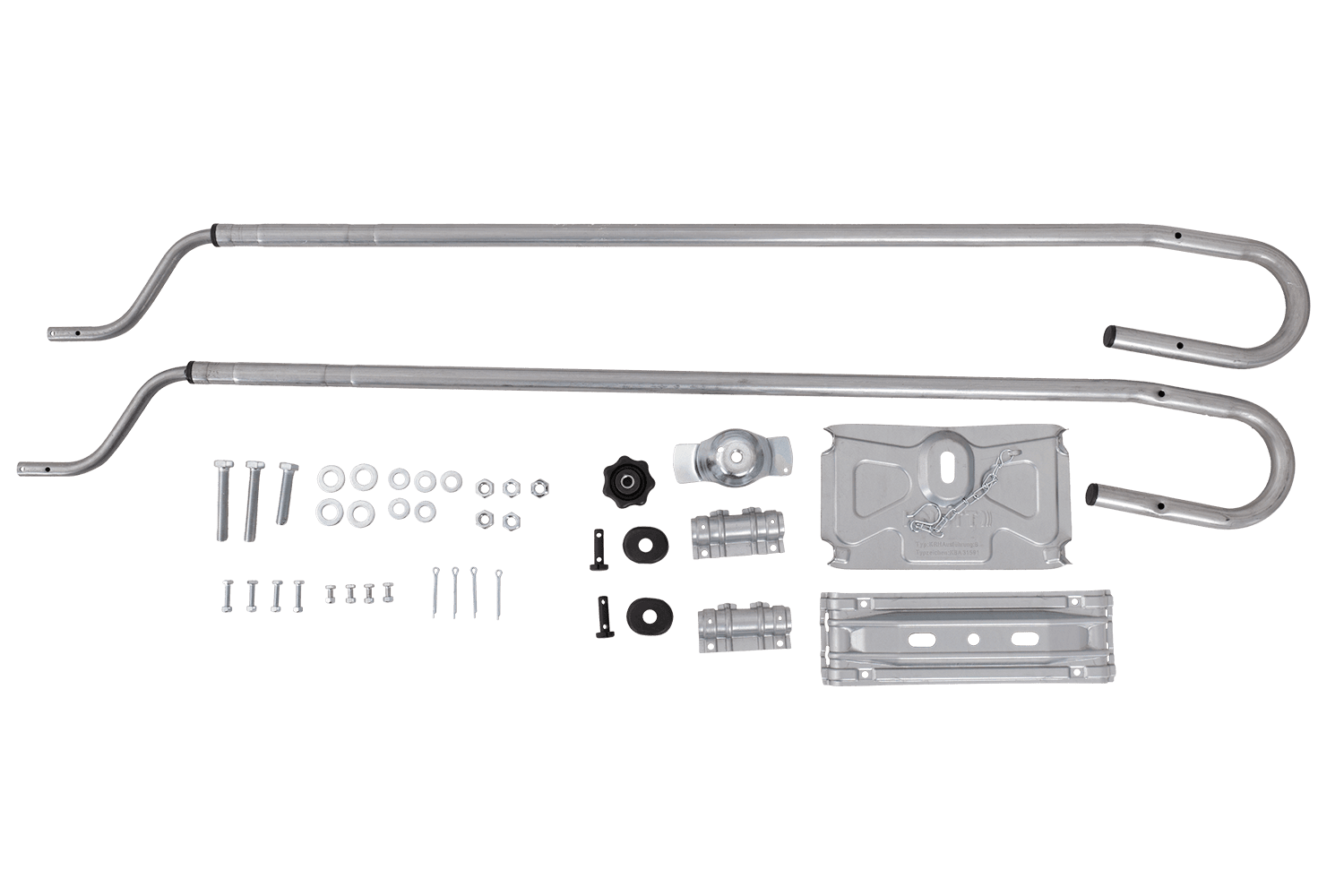 El diseño del soporte es universalmente compatible , lo que permite su instalación en todos los chasis de 1200 a 1500 mm de ancho , independientemente del fabricante del remolque. El mecanismo de ajuste es suave y de variación continua , lo que permite una alineación perfecta con cada modelo de vehículo. Toda la estructura está construida con tubos de acero resistentes a la corrosión con diámetros de 16 mm y 25 mm, lo que garantiza máxima durabilidad, resistencia a la carga y una larga vida útil incluso en condiciones climáticas adversas.