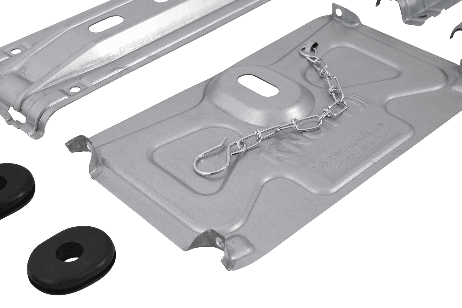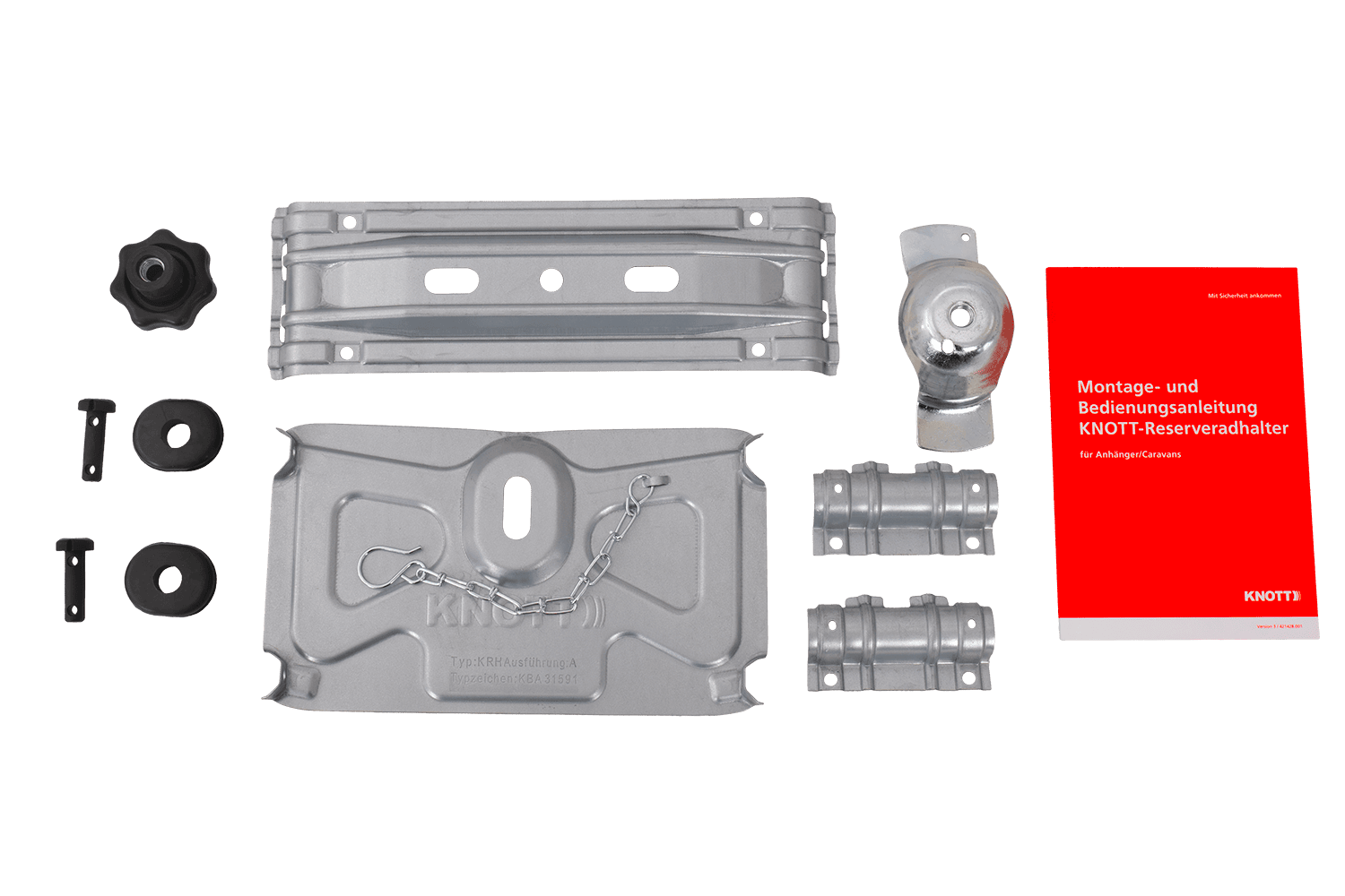 El soporte para rueda de repuesto KNOTT 421241.002 es una solución versátil y funcional diseñada para el montaje en el chasis. La rueda se fija a una placa especial mediante una tuerca que aprovecha el orificio central de la llanta , lo que garantiza una alineación precisa y una sujeción segura durante la conducción. En caso de emergencia en la carretera, la rueda de repuesto se puede extraer fácilmente del soporte y retirar rápidamente, lo que reduce significativamente el tiempo de reemplazo y simplifica todo el proceso.