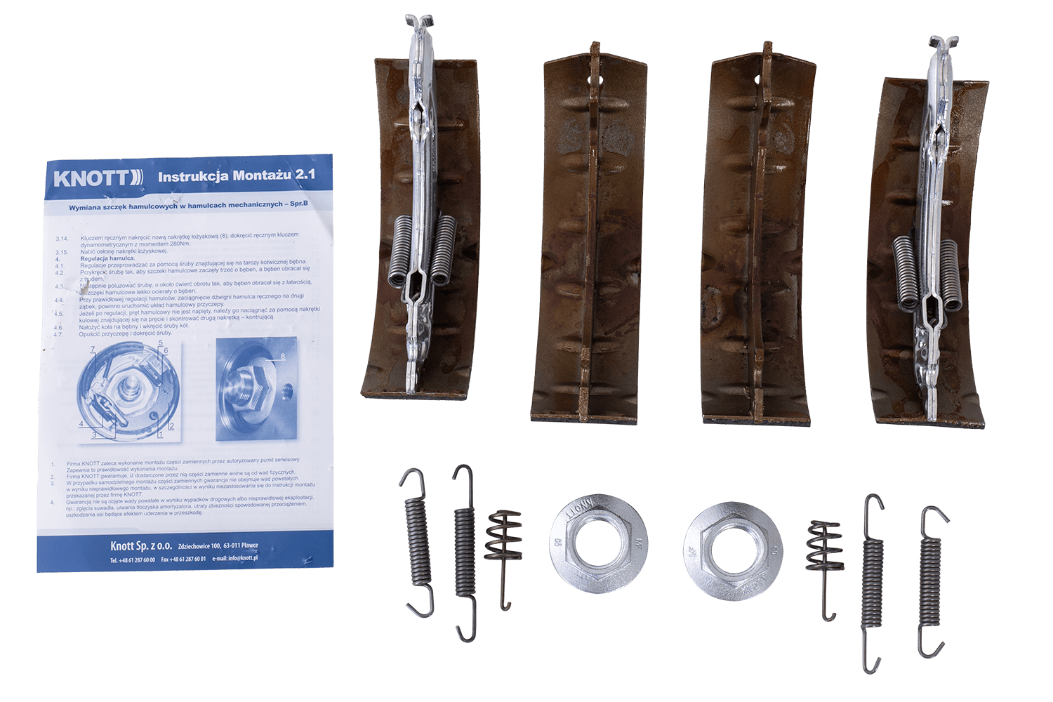 El juego de zapatas de freno KNOTT 47276S es un juego completo y original diseñado para sistemas de freno con tambores de 200x50 mm , utilizados en remolques con ejes con una carga admisible de 1350 a 1500 kg . El kit ha sido diseñado para la regeneración completa del freno de un eje , incluyendo todos los elementos de montaje necesarios.