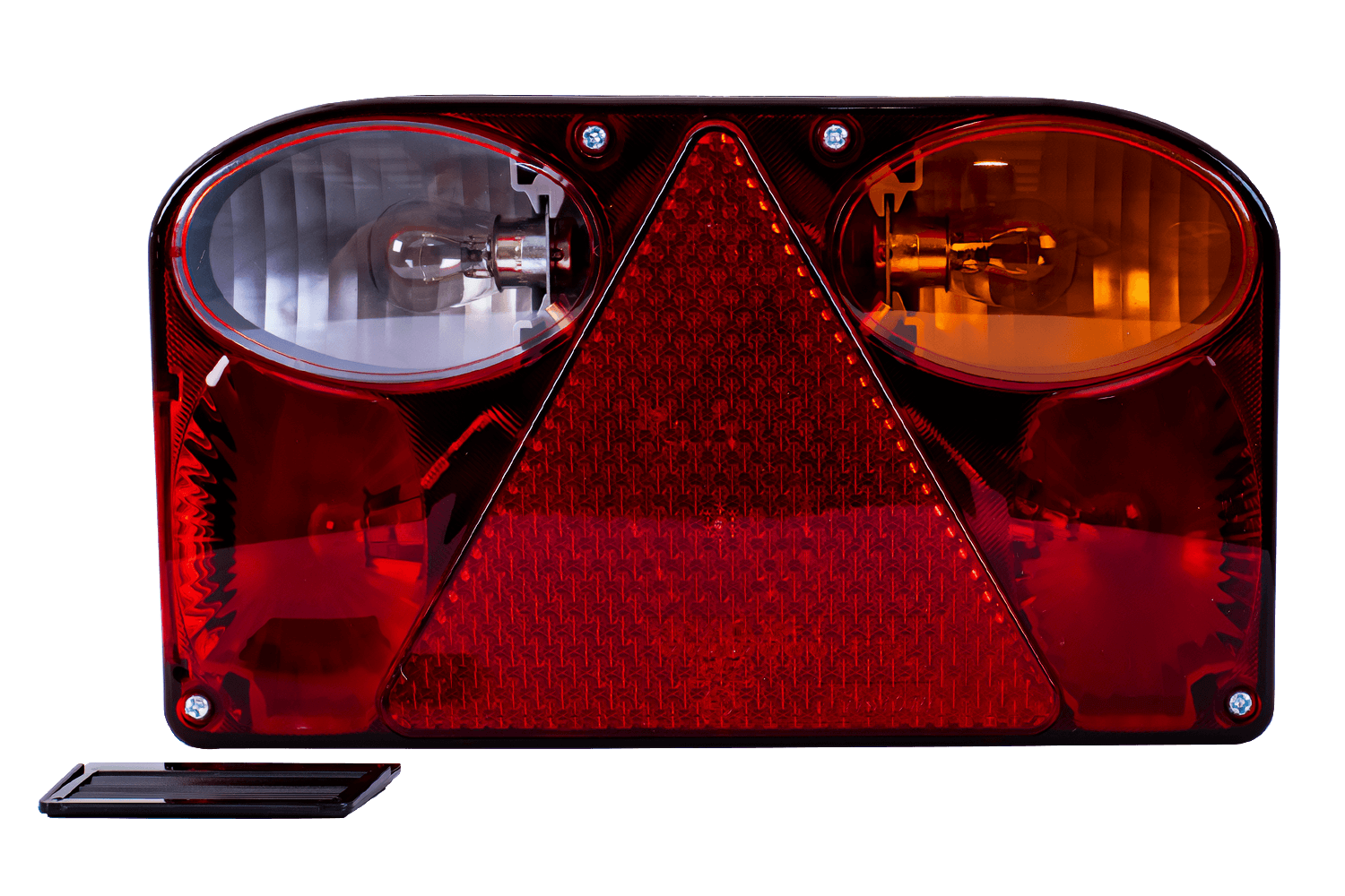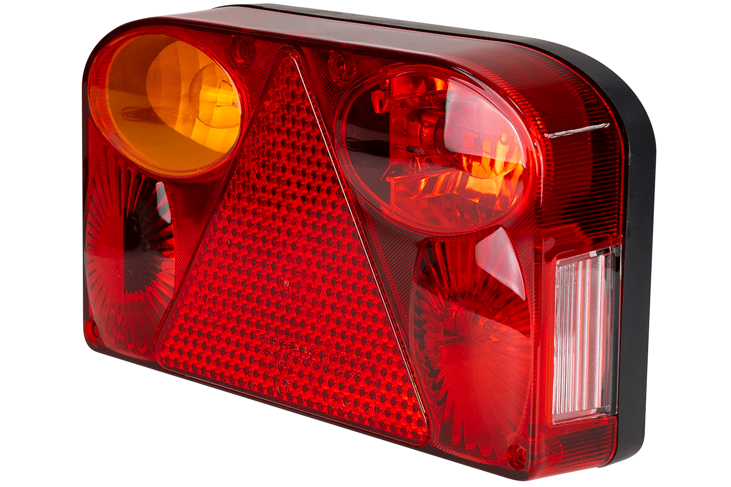 Funciones de la luz trasera: luz de posición , que garantiza la visibilidad del vehículo cuando se conduce de noche; luz de freno , señalización de frenado; señal de giro , que permite indicar la intención de girar ; luz de marcha atrás , que facilita las maniobras de marcha atrás al mejorar la visibilidad detrás del vehículo; una luz antiniebla que aumenta la seguridad en condiciones meteorológicas difíciles, como niebla o fuertes precipitaciones ; una luz de matrícula que garantiza la legibilidad del número de matrícula por la noche; y un reflector que aumenta la visibilidad del vehículo .