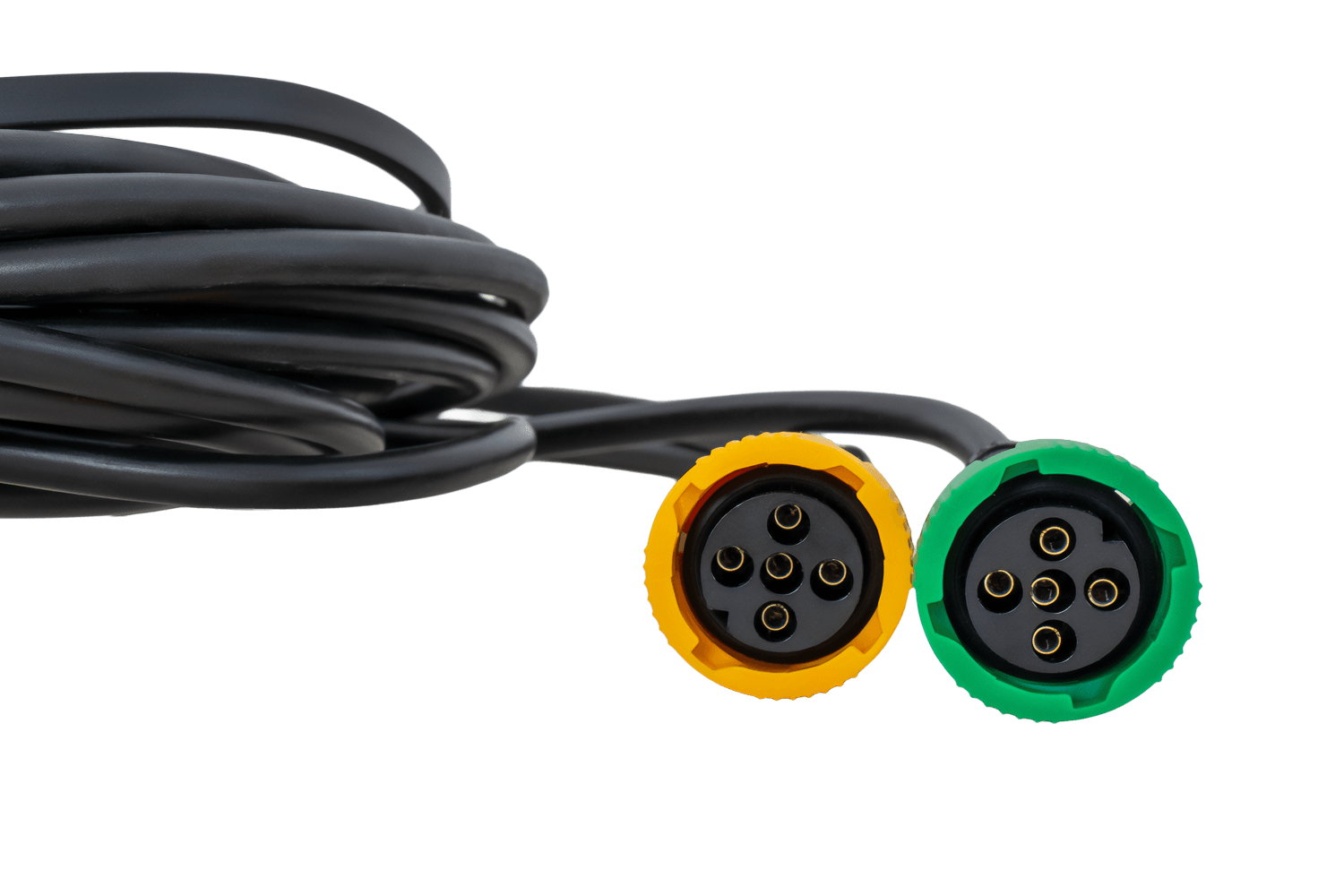 El arnés está equipado con dos conectores de bayoneta de 5 pines para conectar las luces traseras. El sistema de bayoneta garantiza una instalación rápida y segura, eliminando el riesgo de desconexiones accidentales durante la conducción. El diseño del conector garantiza una conexión impermeable y protege los contactos de la corrosión, asegurando así un funcionamiento a largo plazo y sin problemas de todo el sistema de iluminación del remolque.