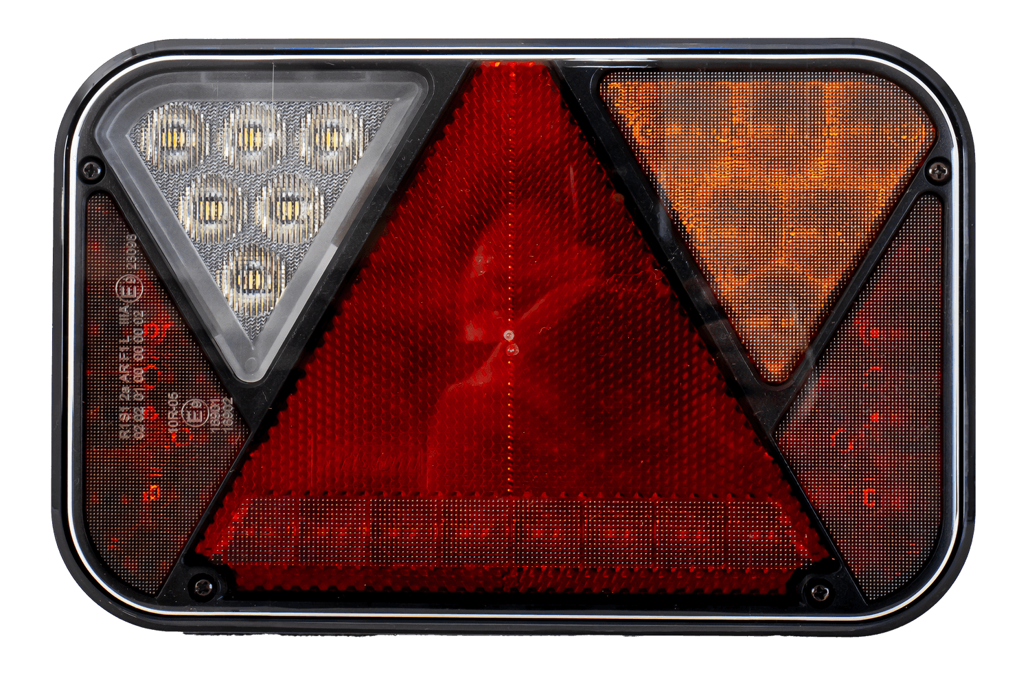 Funciones de la luz trasera: luz de posición , que garantiza la visibilidad del vehículo cuando se conduce de noche; luz de freno , señalización de frenado; señal de giro , que le permite indicar su intención de girar ; luz de marcha atrás , que facilita las maniobras de marcha atrás mejorando la visibilidad detrás del vehículo; luz antiniebla , que aumenta la seguridad en condiciones climáticas difíciles, como niebla o fuertes lluvias ; iluminación de la matrícula , que garantiza la visibilidad del número de matrícula del vehículo durante la noche ; y un triángulo reflectante que aumenta la visibilidad del vehículo .