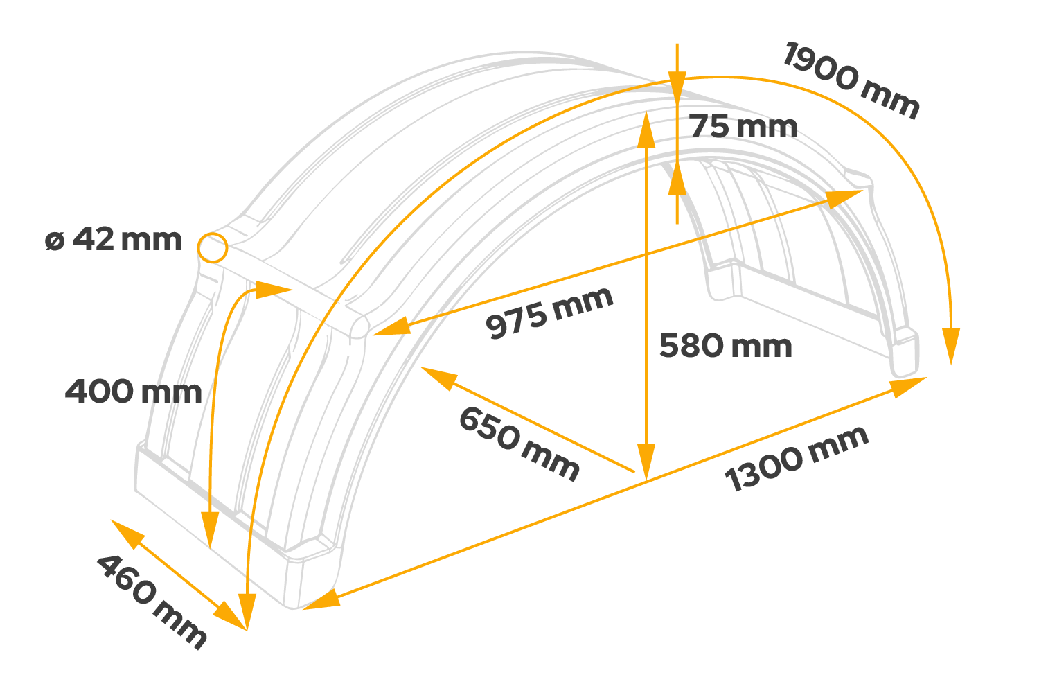 Guardabarros para remolque 19,5-24,5" DOMAR DK4175 paso de rueda 1300/460mm para montaje rápido