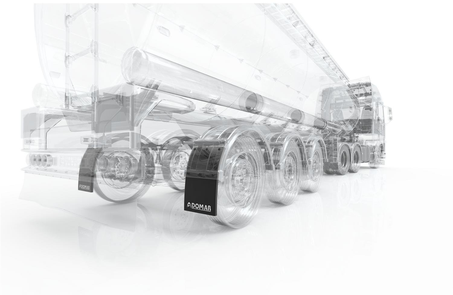 El guardabarros DOMAR está fabricado con PVC duradero , altamente resistente a temperaturas y condiciones de uso exigentes . Este material se caracteriza por una absorción de agua superior al 76 % , lo que reduce eficazmente las salpicaduras y mejora la seguridad al volante.