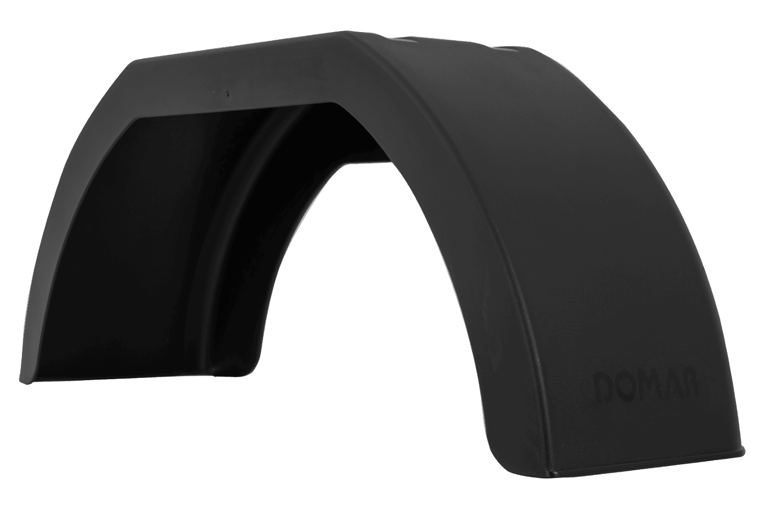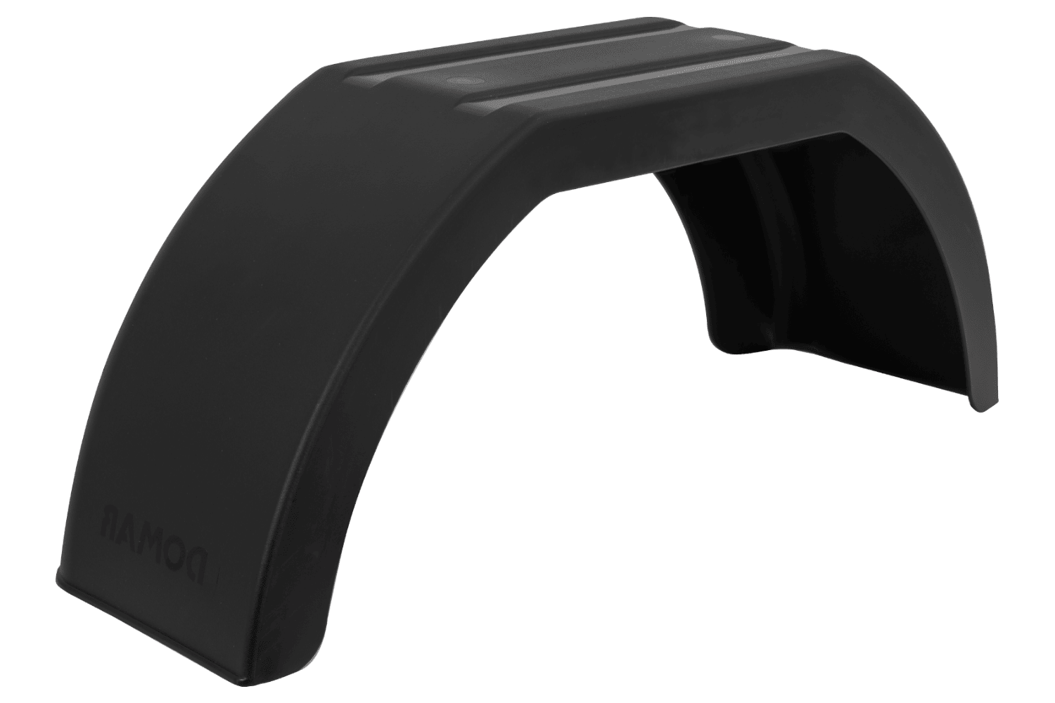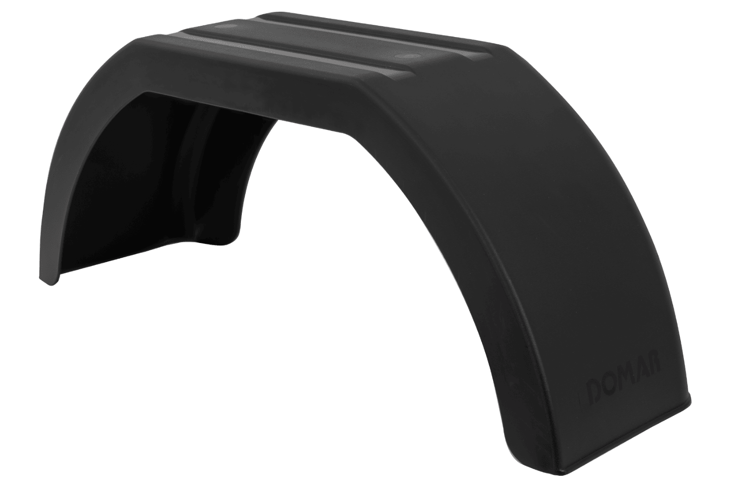 El guardabarros individual D20100 DOMAR , diseñado para ruedas de 8 a 10 pulgadas de diámetro , es un elemento fiable para remolques ligeros de un solo eje , como remolques de carga, remolques de jardín, remolques de motocicletas y carros para el transporte de equipos recreativos (p. ej., quads o motos acuáticas). Gracias a sus dimensiones compactas ( 550 mm de largo, 160 mm de ancho y 175 mm de alto ), ofrece una protección eficaz contra el barro, el agua y la suciedad que se proyectan bajo las ruedas. El guardabarros no tiene orificios de montaje de fábrica , lo que permite ajustar libremente los puntos de montaje a la estructura específica del vehículo. Su base plana, con un relieve adicional que lo refuerza, permite una fácil fijación directa al chasis, garantizando un montaje rápido y cómodo.