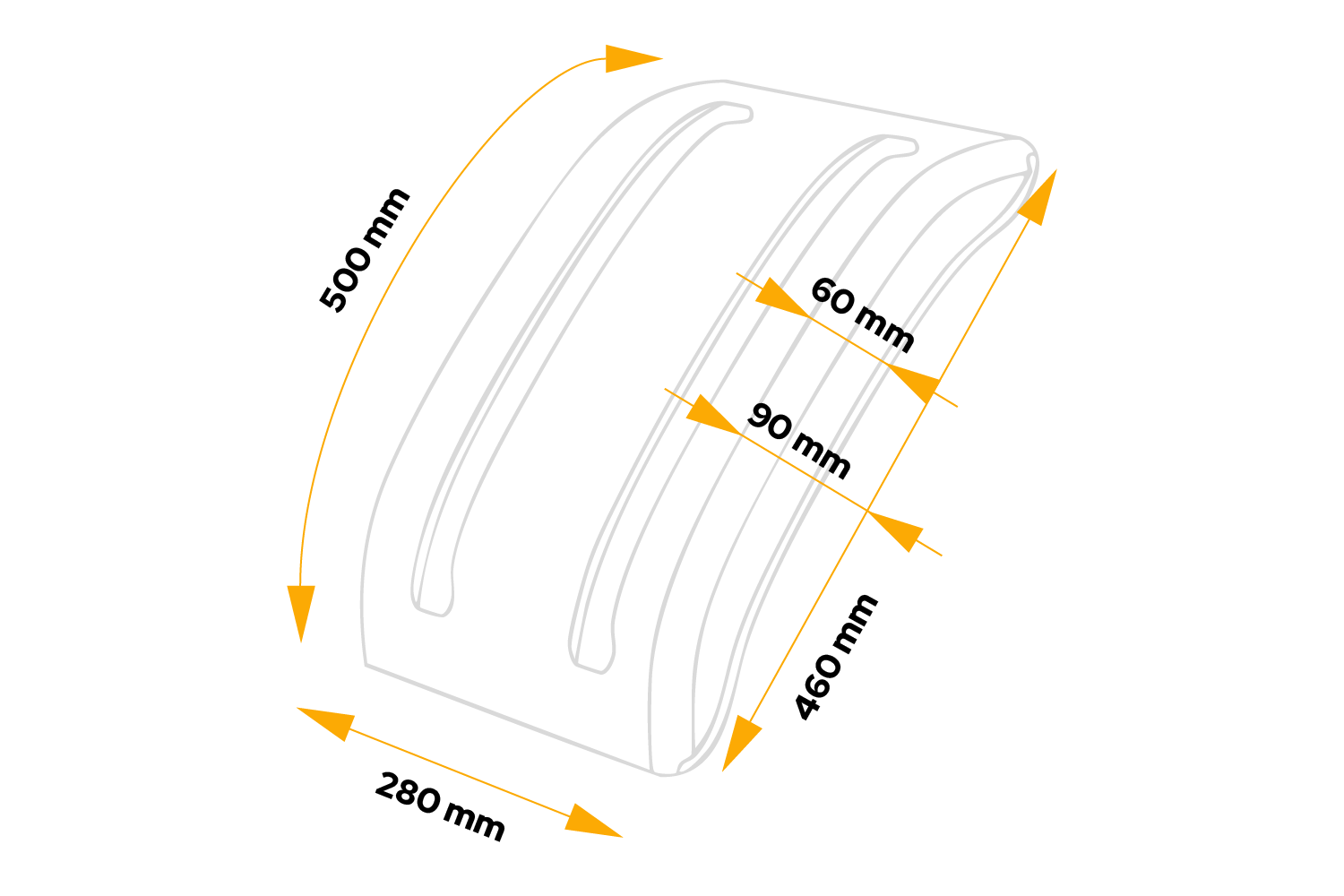 El guardabarros semiautomático D10228 de DOMAR es un elemento compacto y resistente diseñado para proteger las ruedas de remolques utilitarios, semirremolques, maquinaria agrícola y de construcción, y otros vehículos que operan en condiciones exigentes. Gracias a sus dimensiones ( 460 mm de largo, 280 mm de ancho y 90 mm de alto ), es ideal para proteger eficazmente contra el agua, el barro y las piedras que se acumulan debajo de las ruedas, a la vez que ahorra espacio y facilita el acceso a los elementos de conducción. No incluye orificios de montaje de fábrica , lo que permite ajustar libremente los puntos de montaje a la estructura específica del vehículo .