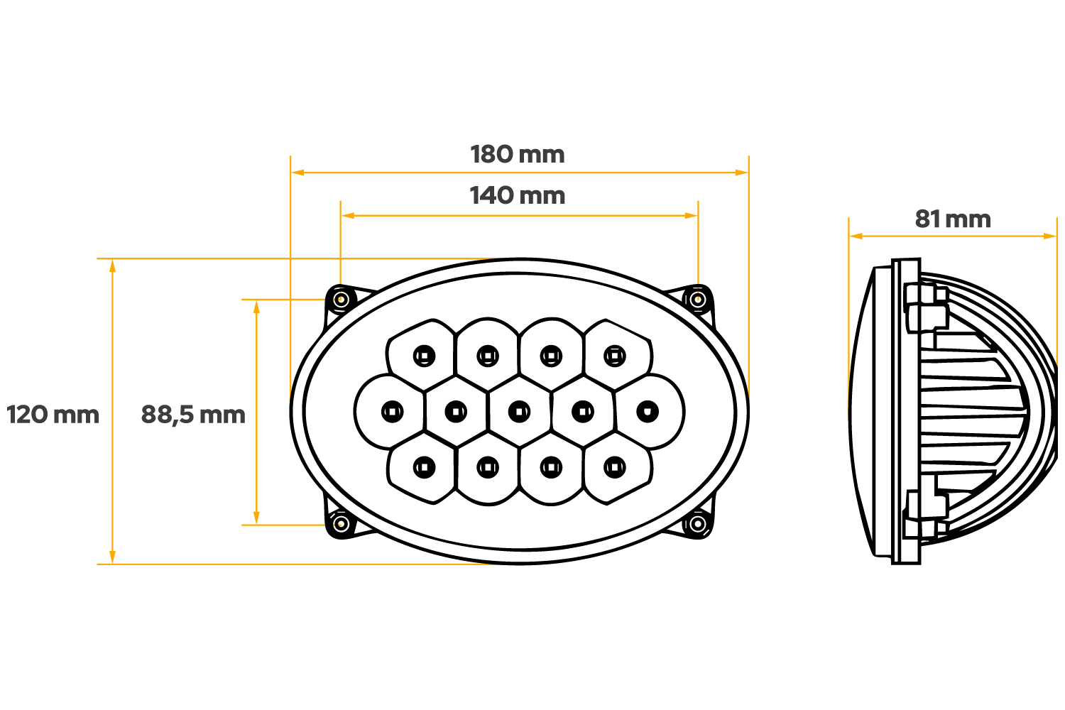 La lámpara se caracteriza por una alta resistencia a golpes, vibraciones y temperaturas extremas que oscilan entre -40°C y +80°C, lo que garantiza su funcionamiento fiable en condiciones de trabajo difíciles. El ángulo de haz ajustable permite un ajuste preciso del haz de luz, minimizando el riesgo de cegar a otros usuarios de la carretera y aumentando así la comodidad y la seguridad en el trabajo. Además, la lámpara cumple con los requisitos de la norma CISPR 25 Clase 4 , lo que significa una alta eficiencia en la reducción del ruido electromagnético , por lo que no interfiere con el funcionamiento de otros dispositivos electrónicos en el vehículo y se puede utilizar de forma segura en máquinas modernas equipadas con electrónica sensible.