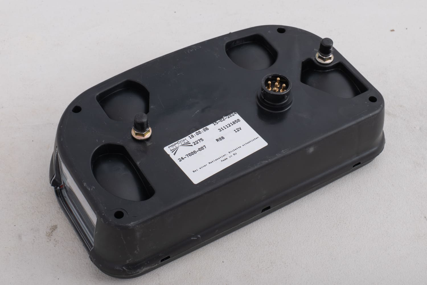 La luz trasera Multipoint II de ASPÖCK está diseñada para su montaje en el lado izquierdo del vehículo y tiene las siguientes dimensiones: ancho 240 mm, alto 140 mm y fondo 52 mm . Equipada con un conector de bayoneta de 5 pines , permite una instalación fácil y rápida. en remolques, autobuses o trailers .