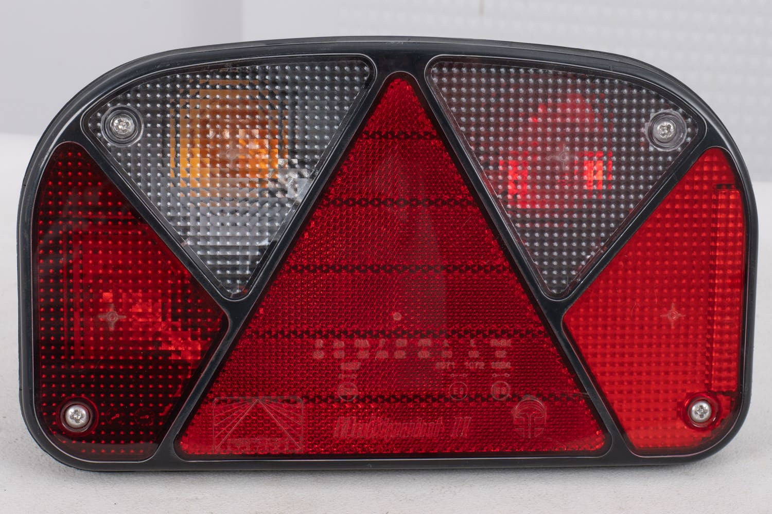La lámpara tiene seis funciones: una luz de posición , que asegura la visibilidad del vehículo cuando se conduce de noche; una luz de freno , que señala el frenado; un indicador de dirección , que permite indicar la intención de girar ; una luz antiniebla , que aumenta la seguridad en condiciones climáticas difíciles, como niebla o fuertes lluvias ; una luz de matrícula , que asegura la visibilidad de la matrícula del vehículo durante la noche ; y un triángulo reflectante , que aumenta la visibilidad del vehículo .