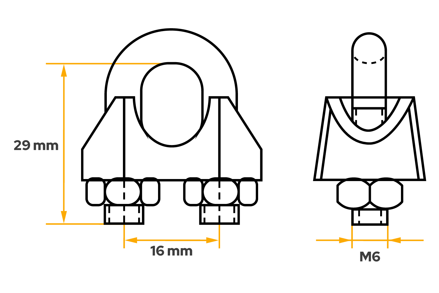 La abrazadera para cables ZL.8 de DROMET es un elemento de montaje práctico y duradero, diseñado para sujetar cables de acero con un diámetro de 8 mm . Equipada con una rosca M6 , tiene 34 mm de altura y una separación entre orificios de 16 mm en los ejes, lo que garantiza un tamaño compacto y una fácil adaptación a diversos sistemas de fijación. El cuerpo de la abrazadera está fabricado en hierro fundido resistente, mientras que el arco es de acero galvanizado, lo que garantiza una alta resistencia a la corrosión y una larga vida útil incluso en condiciones externas adversas .