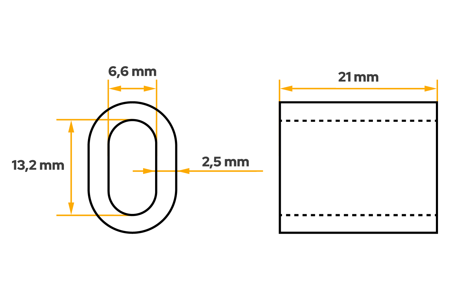 El conector de aluminio ZLA.6 de DROMET está diseñado para sujetar cables de acero con un diámetro de 6 mm . El producto tiene unas dimensiones de manguito interno de 6,6 × 13,2 mm y una longitud total de 21 mm , lo que permite una colocación precisa y duradera del cable. Se utiliza principalmente en la fabricación de eslingas de cuerda y permite la creación eficaz de bucles y conexiones en sistemas de sujeción.