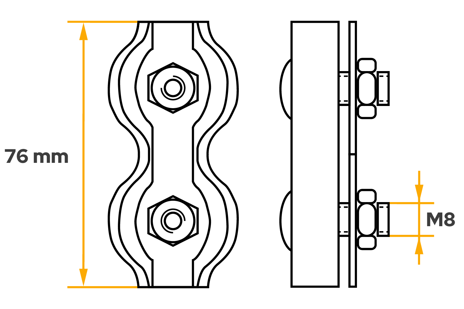 Las abrazaderas de sillín se encuentran entre los accesorios de montaje más comunes para formar bucles y cabos y sujetarlos en una posición específica. Su doble construcción aumenta la superficie de presión , lo que se traduce en una mayor fiabilidad de la conexión, especialmente en sistemas expuestos a vibraciones y cargas. Su versatilidad las hace ampliamente utilizadas también en el transporte, la navegación, la instalación de redes, vallas y estructuras de acero.