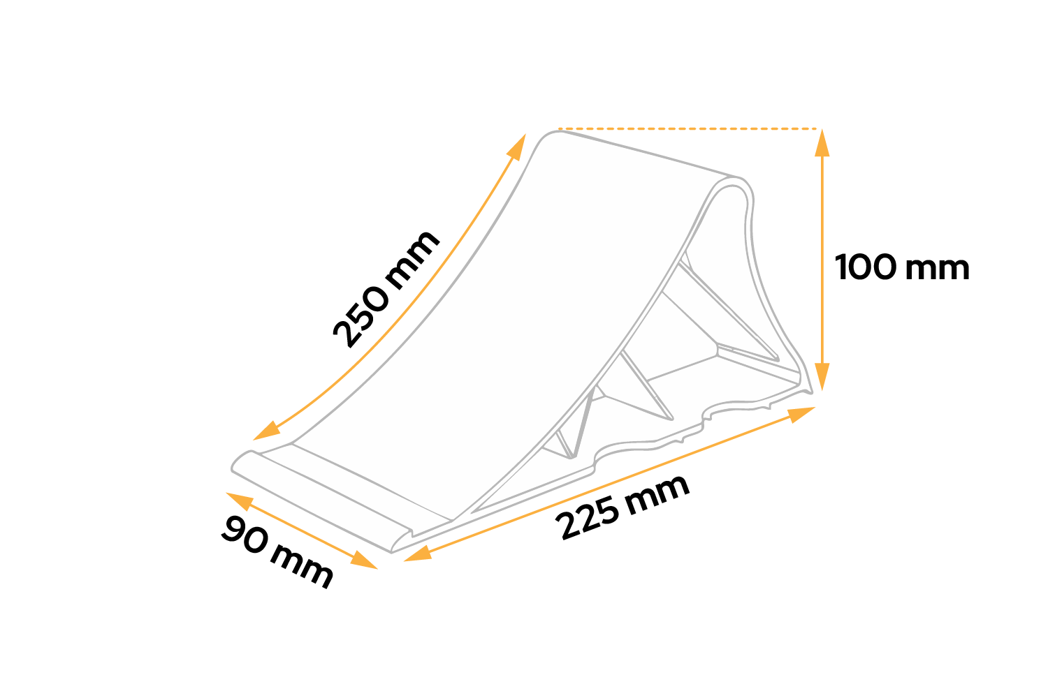 El calzo UNITRAILER , diseñado principalmente para remolques, caravanas y remolques de construcción, mide 225 mm de largo, 90 mm de ancho y 100 mm de alto y está diseñado para garantizar la máxima estabilidad del vehículo durante el estacionamiento, la carga, la descarga o las tareas de mantenimiento. Su robusta construcción y su perfil único garantizan una inmovilización eficaz de las ruedas y evitan el movimiento incontrolado del vehículo .